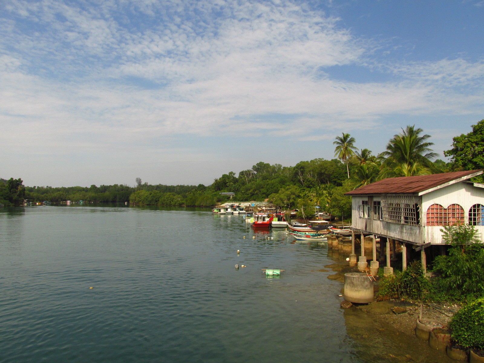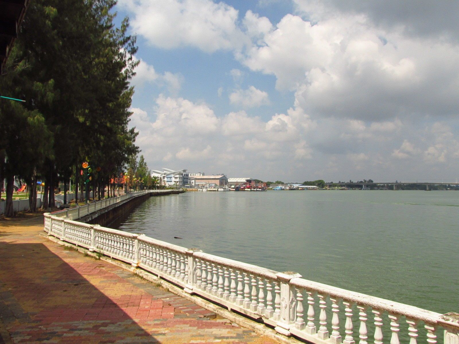 A straight and flat ride out to Kuala Terengganu. Initially it seemed to be an idyllic ride amongst to Kampungs until the road from Dungun joined Highway 3 - it was then a four lane divided road for almost 40 km, which made for fast riding, but was kind of boring. Then the 'new' road finished, and it was back to a normal standard of road, but with less traffic than the west side of the Peninsular. At Marang, which is a pick up for tour boats to the islands, I saw my first westerners for a few days. I had a lovely lunch at the waterfront at Marang, before making it K. Terangganu by about 1230.