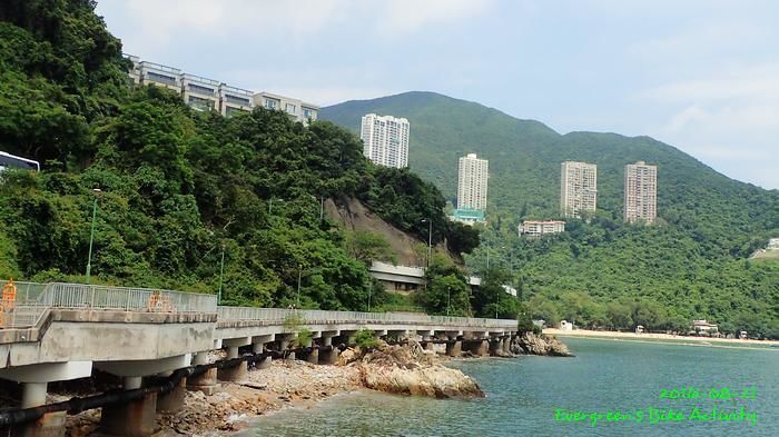 行程繼續,踩了環島路線中好少踩的紅山半島;赤柱去淺水灣,近幾年都是踩赫蘭道小公園落南灣道的小徑,今天怕小徑濕滑,是踩淺水道下去。