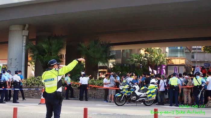 我以前環島的路線,一向是灣仔碼頭沿海邊踩到遊艇會,踩銅鑼灣避風塘海邊過去北角。現在因為建築工程封了路,踩到政府總部就要出去金鐘道和汽車鬥快,但係遇到遊行示威,警察封路改道,要多繞一圈才能出去。因為封路,交通擠塞,兩邊大巴、大貨車、… 夾著,太刺激了。一路到了轉入電器道後,這才可以踩的放鬆點。