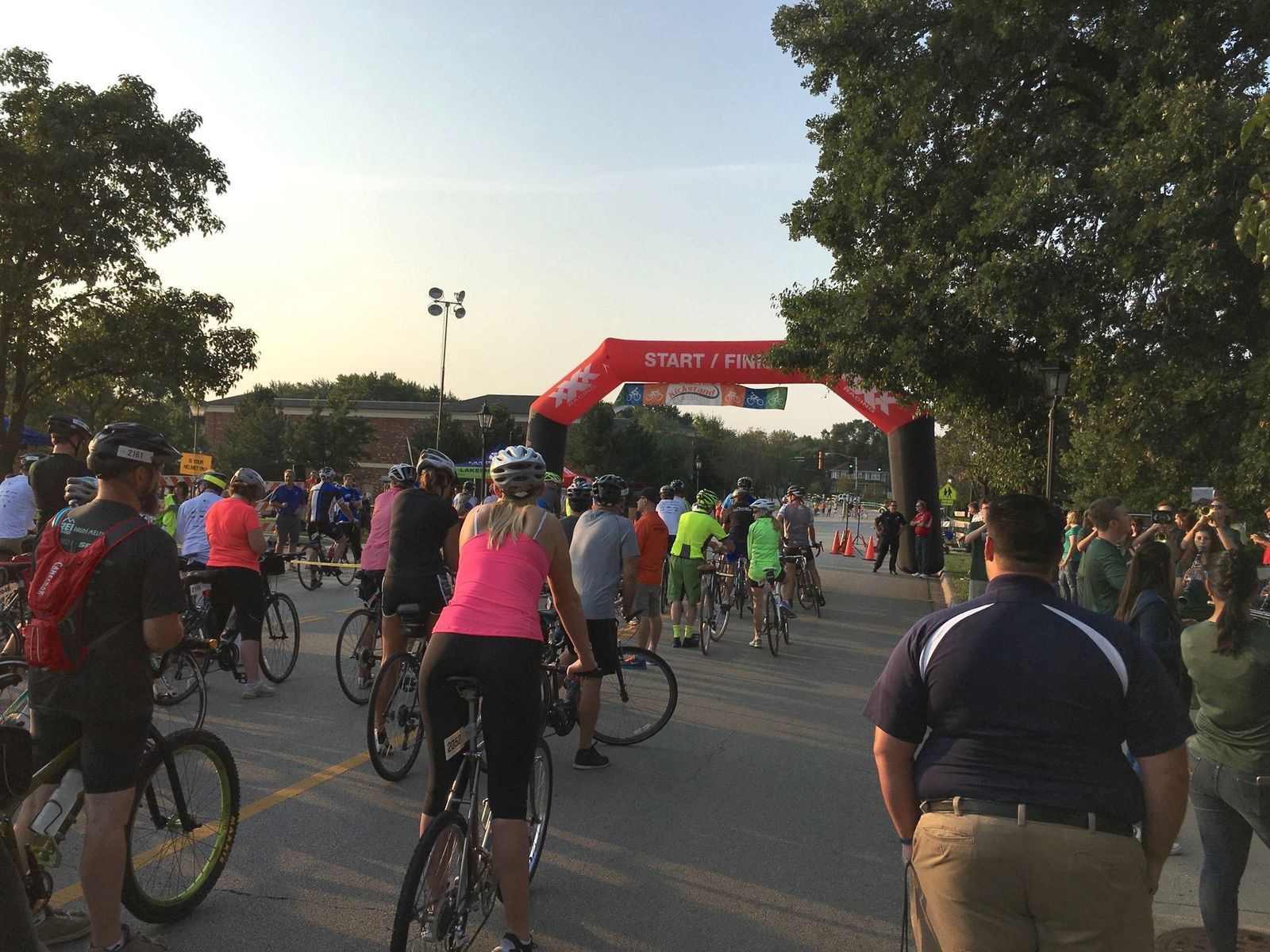 I rode in the inaugural Kickstand Classic, sponsored by Active Transportation Alliance in Bartlett. I had selected the "Middle of the Road" wave and the 19 mile distance. I got up at 4:45, drank doses of NoX and E-shot, left the house at 5:48, arrived at the Metra parking lot in Bartlett at 6:05, registered at 6:20 across from the 2 Toots Grill, rode to the BMO Harris corral at 6:50, fell in line in BMO Harris lot at 7:35, and began riding the course at 7:52. As a member of the "Middle of the Road" wave, I completed four 4.8 mile circuits through the Bartlett course, completing the laps in 18:45, 19:23, 18:48, and 17:53, for a total time of 1:14:47. I completed my ride at 9:10, left the festival at 10:40, arrived back at the car at 10:44, and returned home at 11:06. Skies were mostly sunny with temperatures rising from 63 - 68 with a dew point of 60 with light SE winds. I wore Castelli shorts, red Giordano jersey, arm warmers, leg warmers, and Giro gloves.