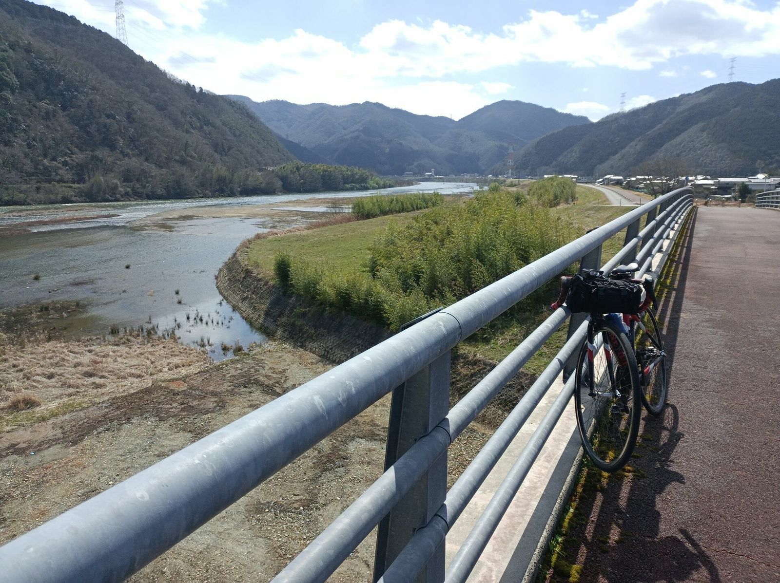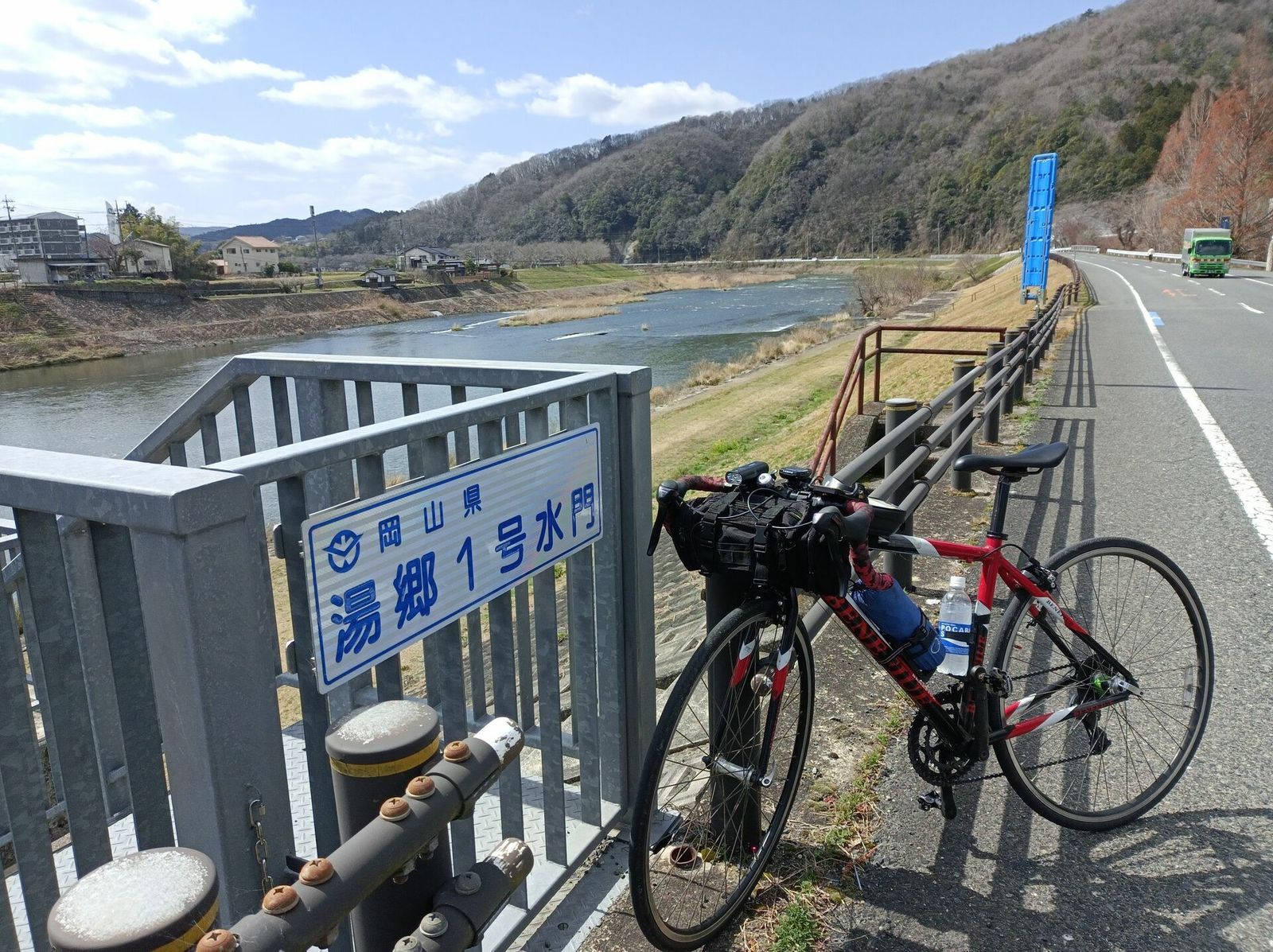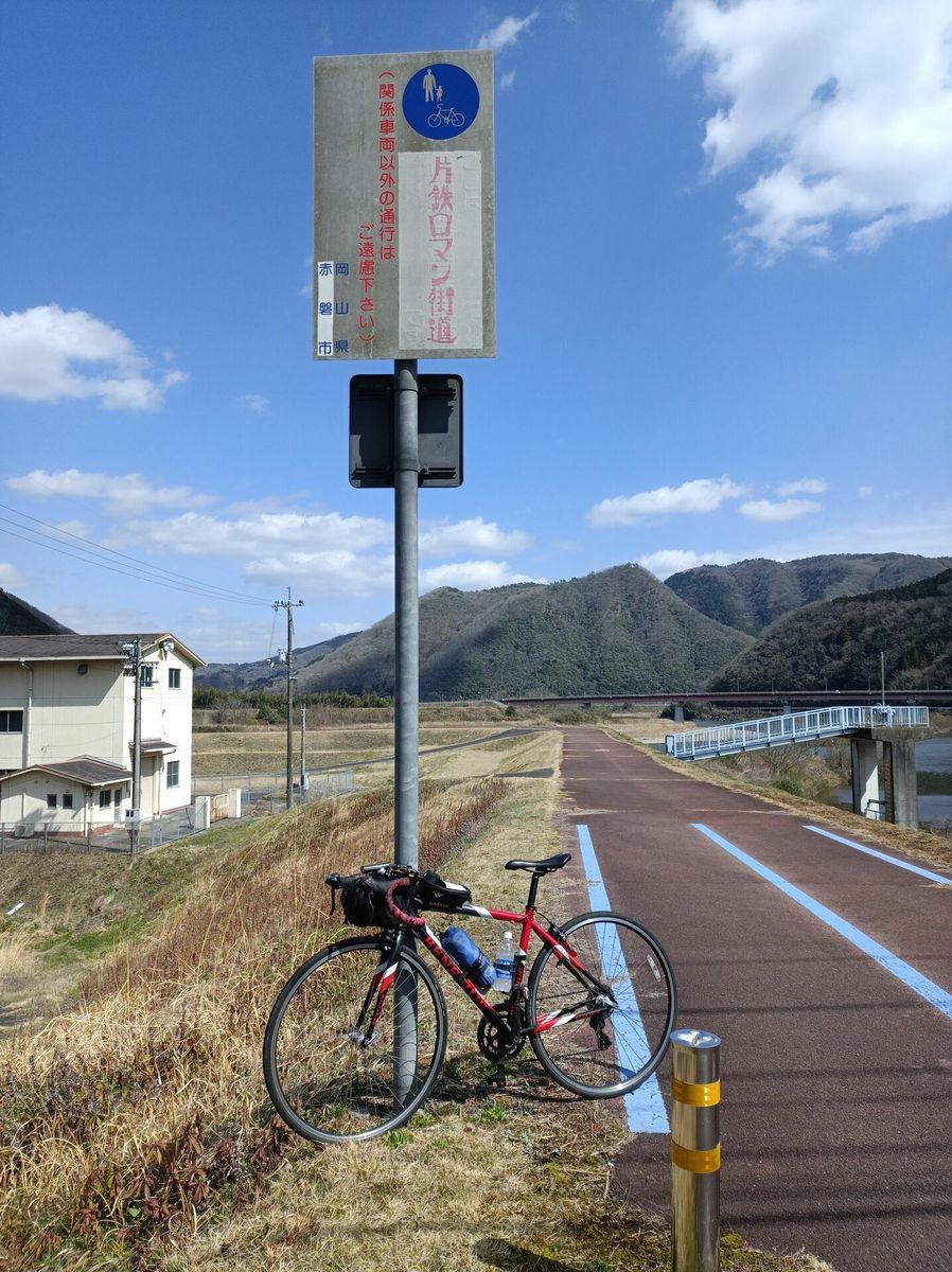 津山を過ぎると晴れてきて、風も追い風になり、下り基調で片鉄ロマン街道へ。片鉄ロマン街道は、サイクリングロードとして大変良い。道幅広く、舗装も良く、ルートを失うこともない。津山側から入ったのでだいたい緩やかな下りで、自動車からも分離されているので、大変爽快に走れた。これまで走ったサイクリングロードの中でも一二を争う良さ。本当は日生から赤穂に抜けたかったが、今日の泊まりも岡山なので、後ろ髪を引かれつつホテルへ戻る。