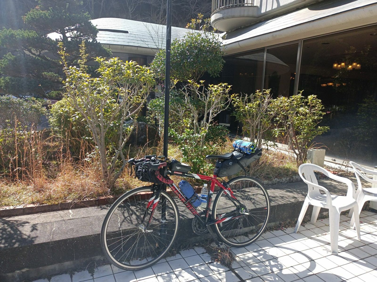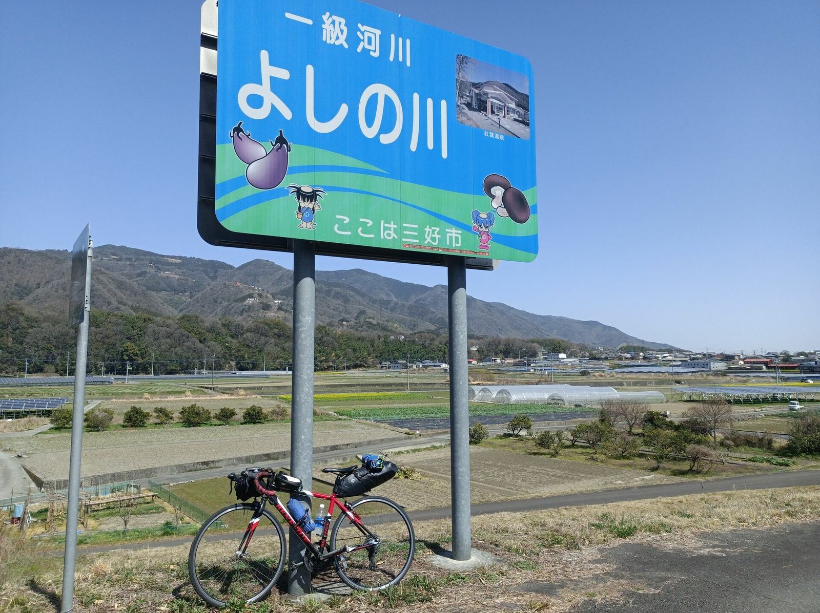 東みよし町の美濃田大橋という地点で折り返し、国道192号で徳島へ。途中2度目のパンク。前日の寒霞渓ヒルクライムの疲れがあったのでこの日は控えめになった。吉野川右岸も平坦で走りよい。