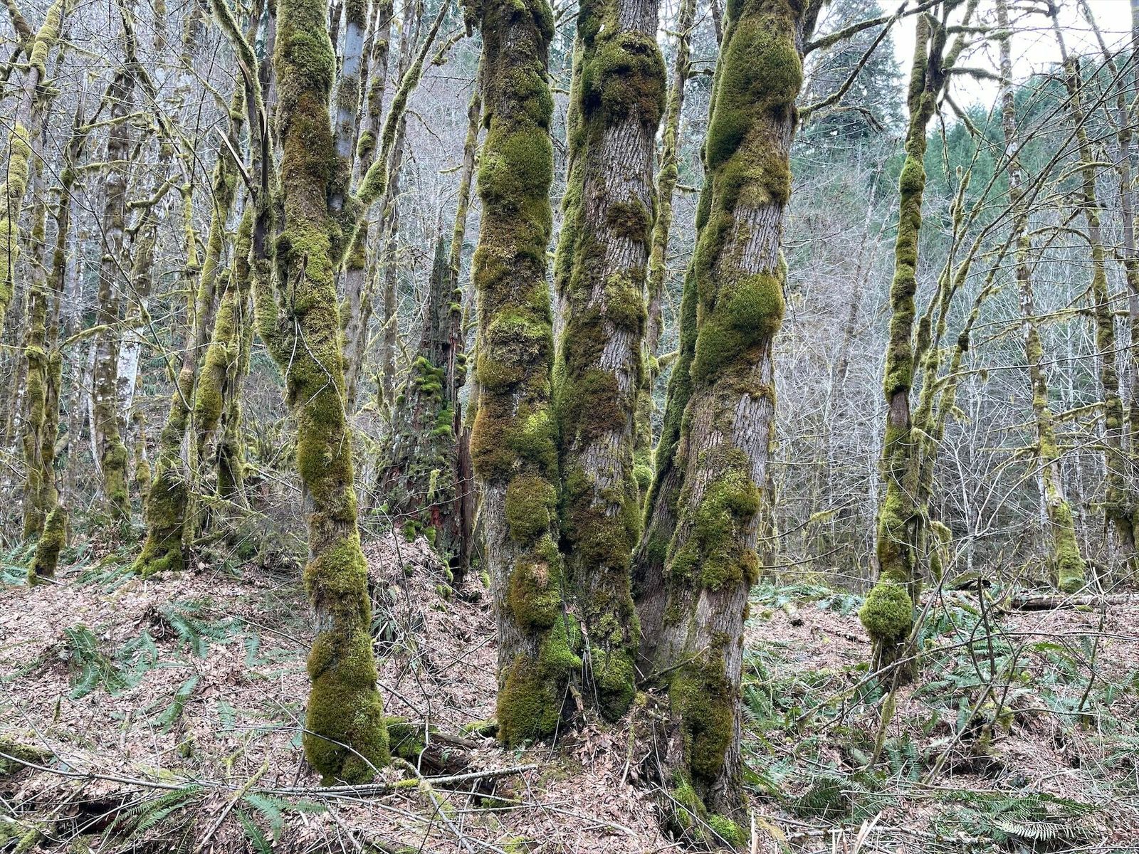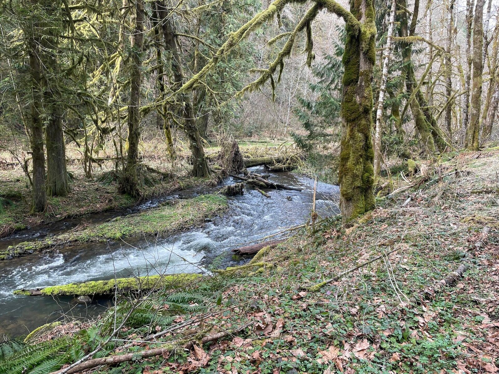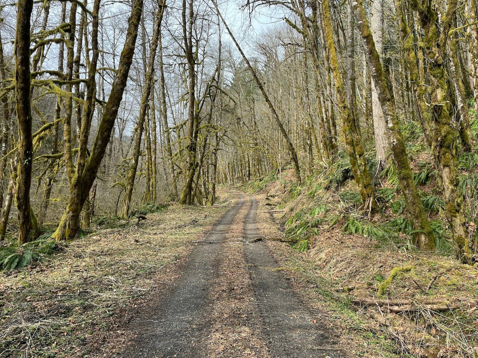 Quite a variety for today's finale. Picked up a great tow from the roadies heading out to Sauvie Island. Dutch Canyon is beautiful and I had planned to go over the top to Smoke Ranch, but a mile of snowy hike-a-bike convinced me to go back to Otto Miler. My rear derailleur cable snapped at the north end of Skyline, so I rolled it all the way home 2-speed style. Overall, it has been a fantastic week exploring this area.