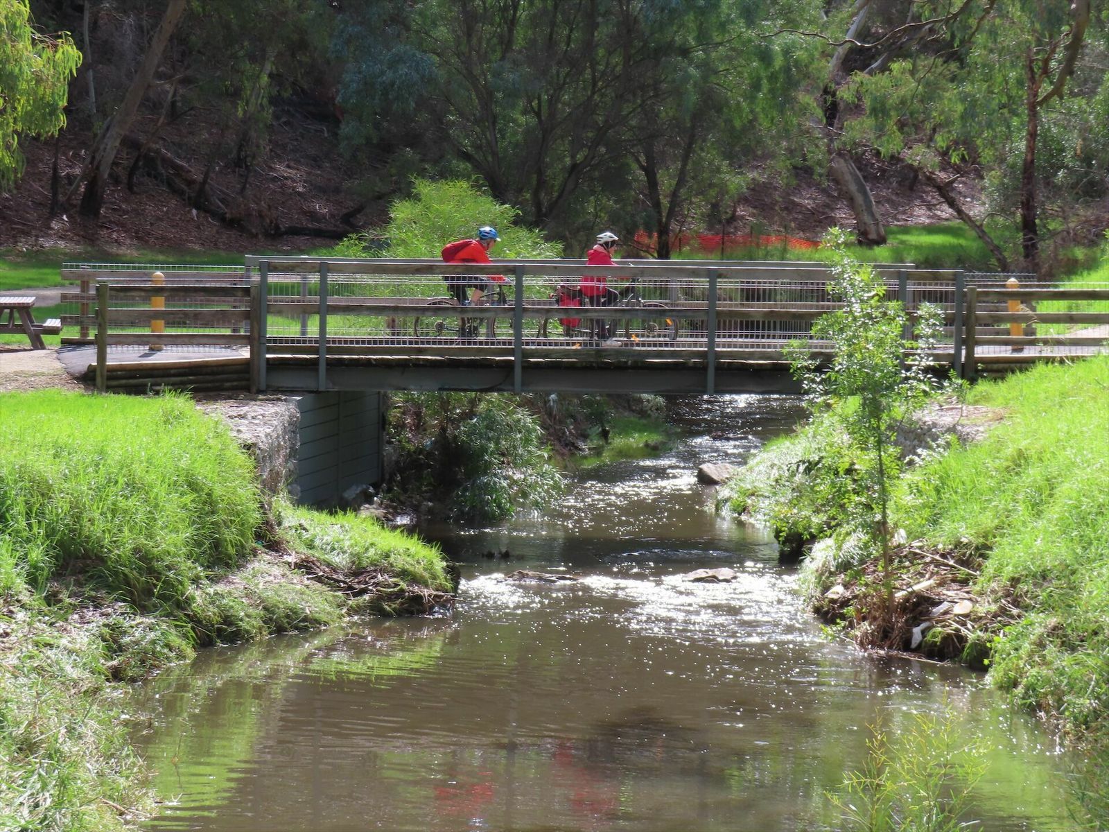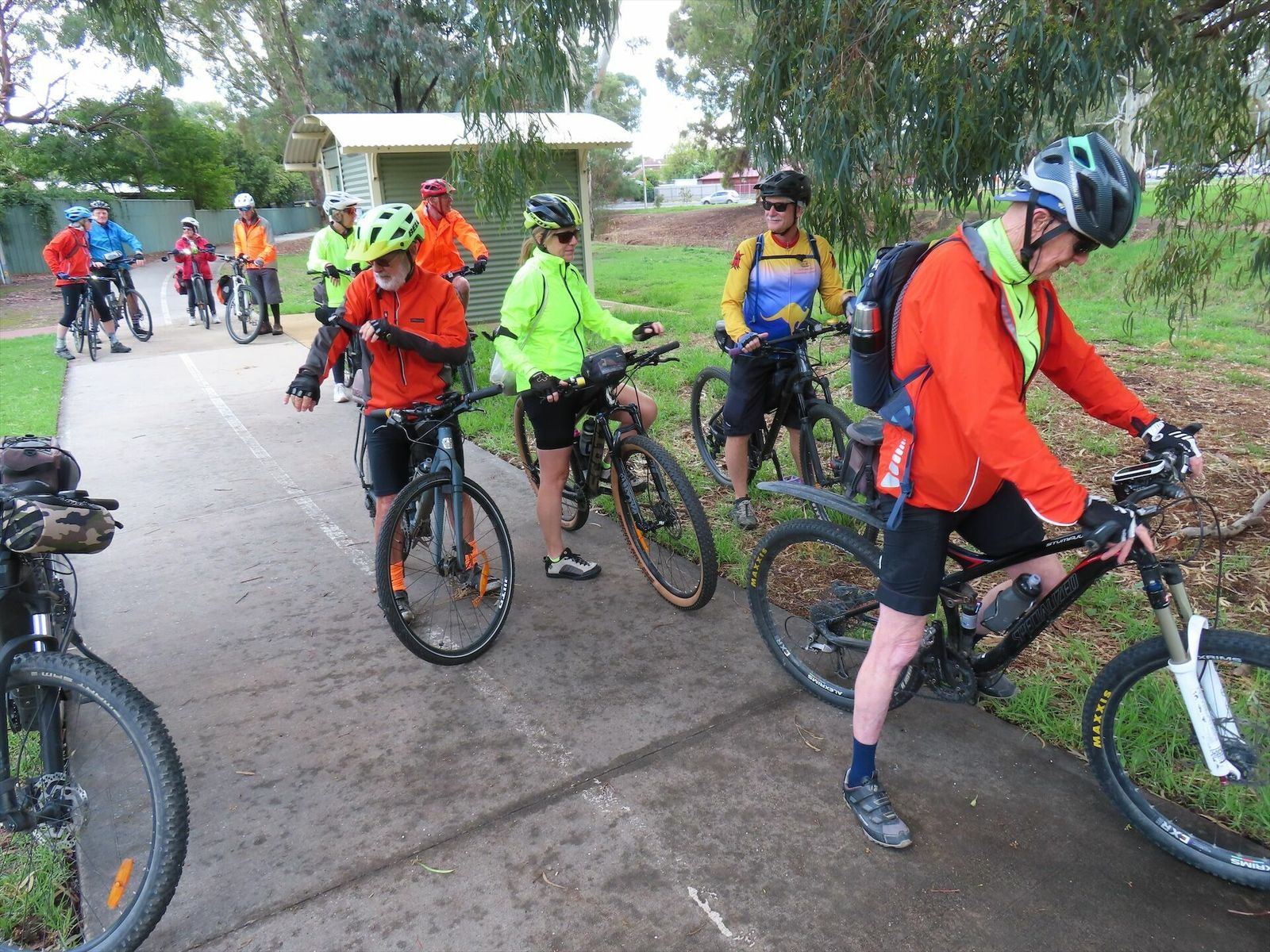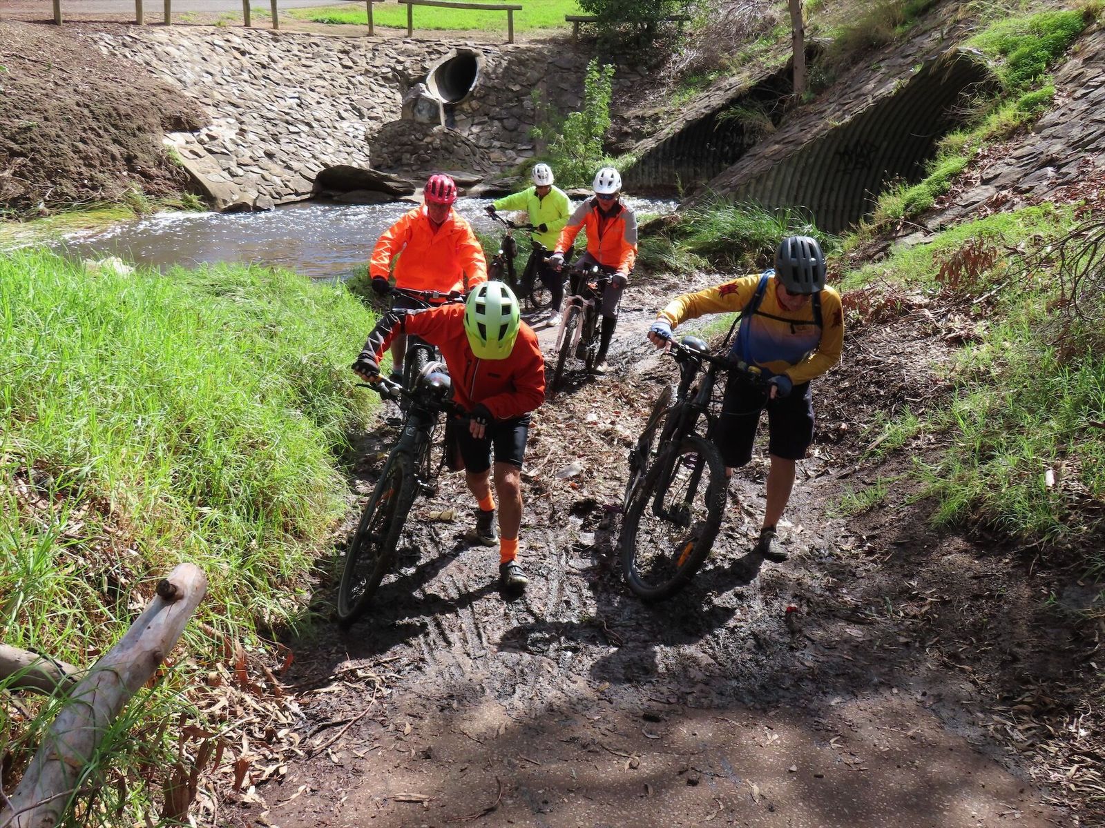 We had 12 riders today. The weather forecast was “partly cloudy”. We had some sunshine and it did not rain. However, Dry Creek was very wet and there was some mud left from recent rains.