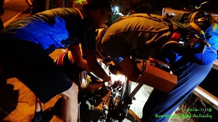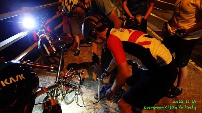 當我們為肥佬踩查看時,宏哥繼續踩到前面行人橋下才停車等候,但係他剛好停入暗角位,我們繼續騎行時,宏哥沒見到我們,我們互相沒有見到。我們一路踩到高處,與深水埔踩上來的幾位車友會合,竟然沒見到宏哥踩回來,我就知道出事了。幸好這兒不是深山,打電話聯絡上宏哥後,什麼問題也沒有。反正我們也要花點時間為肥佬黎補呔,宏哥來到,時間剛剛好。