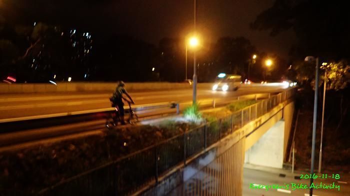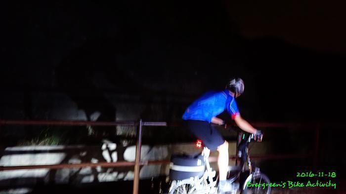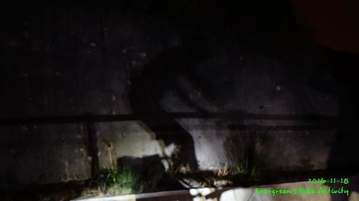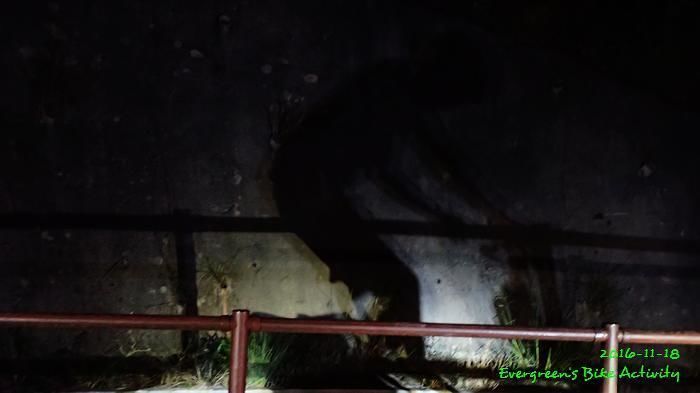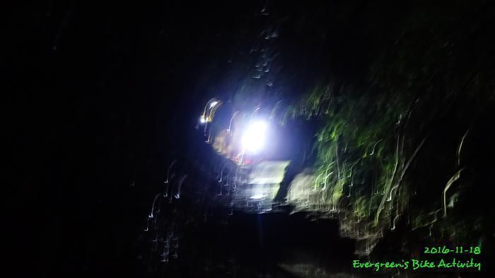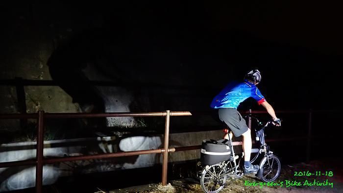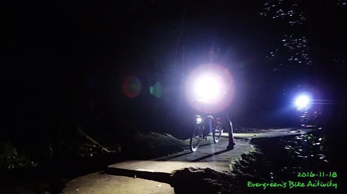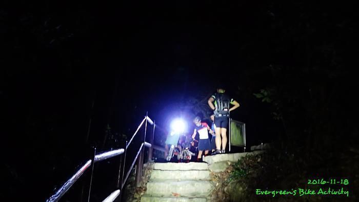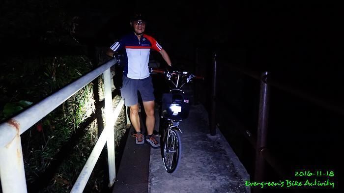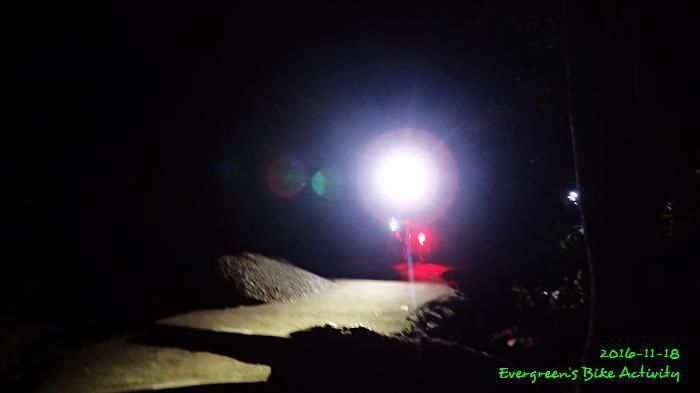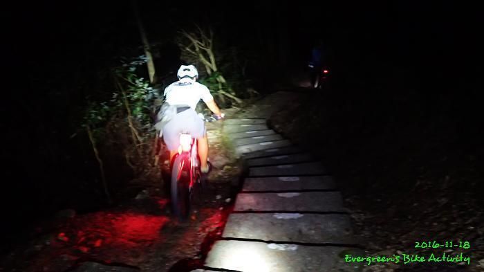 之後沿引水道騎行,因為環境太黑,大家又騎的太快,竟然騎到盡頭也沒見到落山的梯級,這只好往回騎,慢慢找尋。來回幾次,找到了計劃中落新田圍的路線。但係 Rocky 好有意見,認為落獅子山隧道公路的路線更好,我們討論了十幾分鐘,最後是跟他的意見;因為我沒踩過 Rocky 提供的路線,有新路線,我當然是踩沒踩過的。