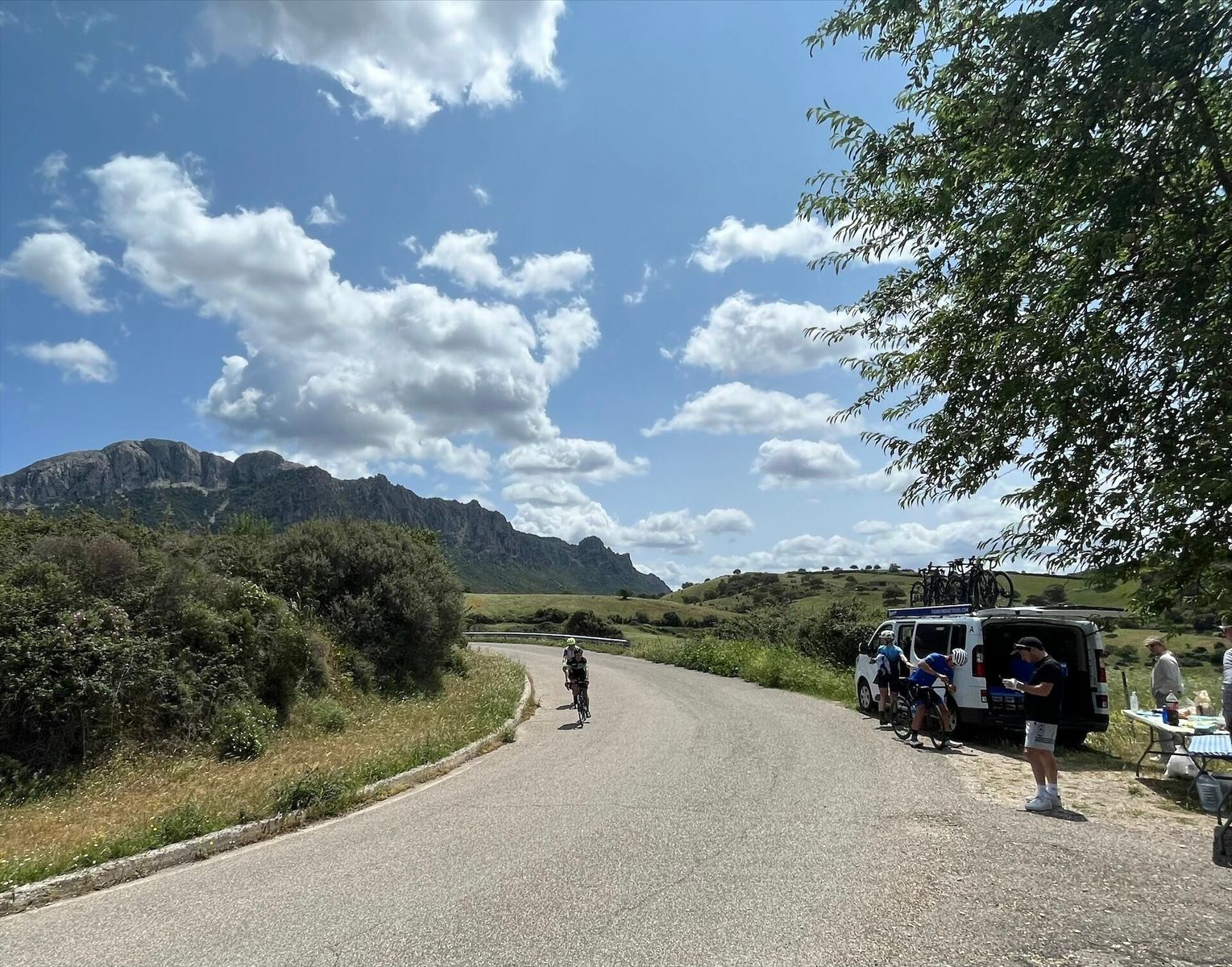 We started completing a series of stunning climbs at the beginning of this Day 6 ride. Then we did a sensational ride following the 25 miles mountain climb that leads to Siniscola from Lula. Wow! It is a long climb but the grades are gentle allowing us to enjoy the incredible views offered all along this climb. And finally, a wonderful descend down to our beachside hotel ( S’Arena Beach Hotel) completed a great day of riding.