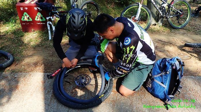 太空人的車呔中了鋼絲,前後攪了三次才解決,正好給久休複出的我趁機休息。今天踩完四排石山是兩點過些,以這路線來說,比以往快了接近一小時,大家都有點意想不到。