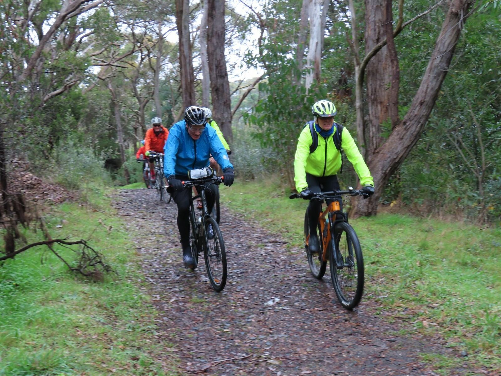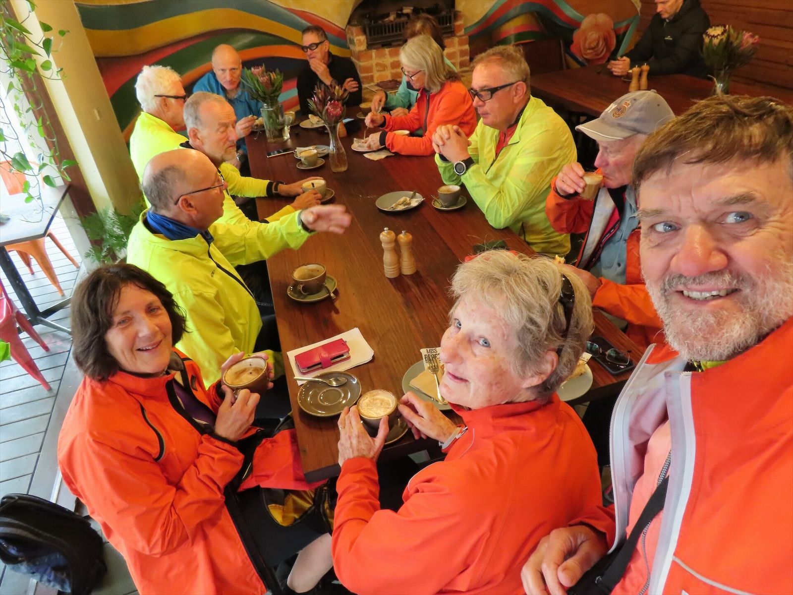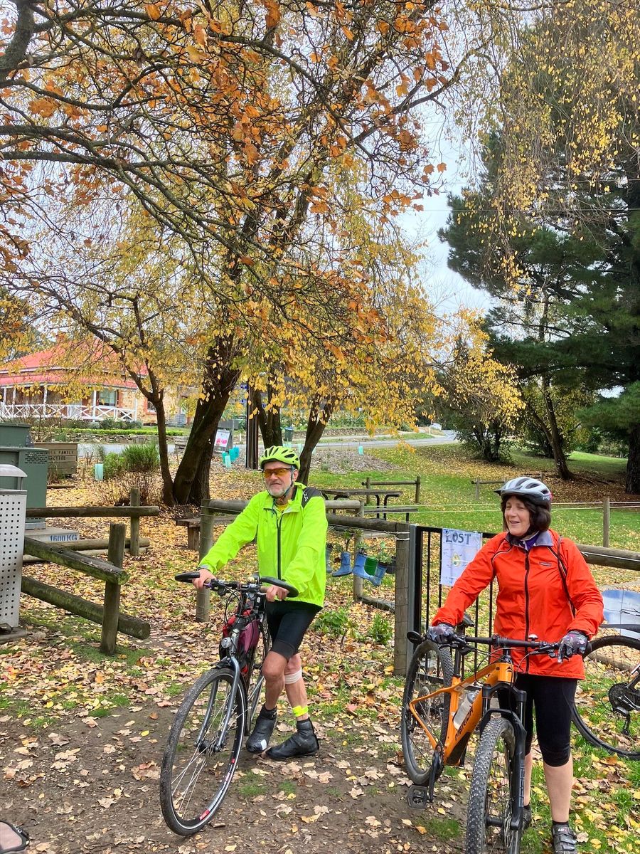 The Determined Dozen braved the rocks, roots and mud of Woorabinda Bushland Reserve before coffee and cake in Stirling. Then it was a fast shortcut to Uraidla for lunch under the autumnal oaks. Five then took a shortcut back to Bridgewater.