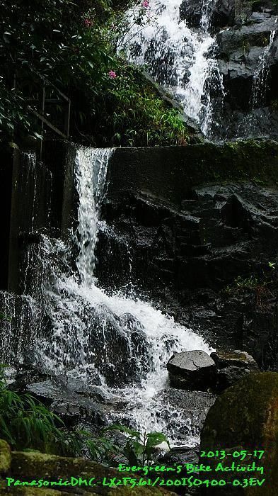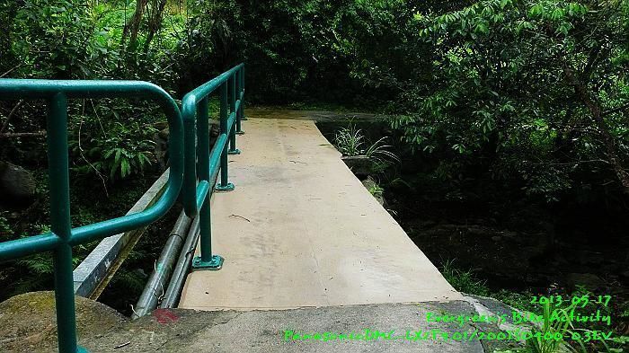 另外,今天有一件頗值記載的事,是見到小型的山洪暴發。在騎上羌山道時,一路下著雨,在騎到離坡頂百多米,羌山道爬坡途中最後一條山溪,當時我感覺好辛苦,停下來休息、飲水。那時,雖然下雨中,小溪仍然沒有什麼水。幾分鐘後,忽然聽到身後好大的水聲,回頭一望,本來微弱的清水小溪,變成洶湧的黃泥水,水勢大了好多倍。在我回程經過再看時,又回複到原來的模樣。