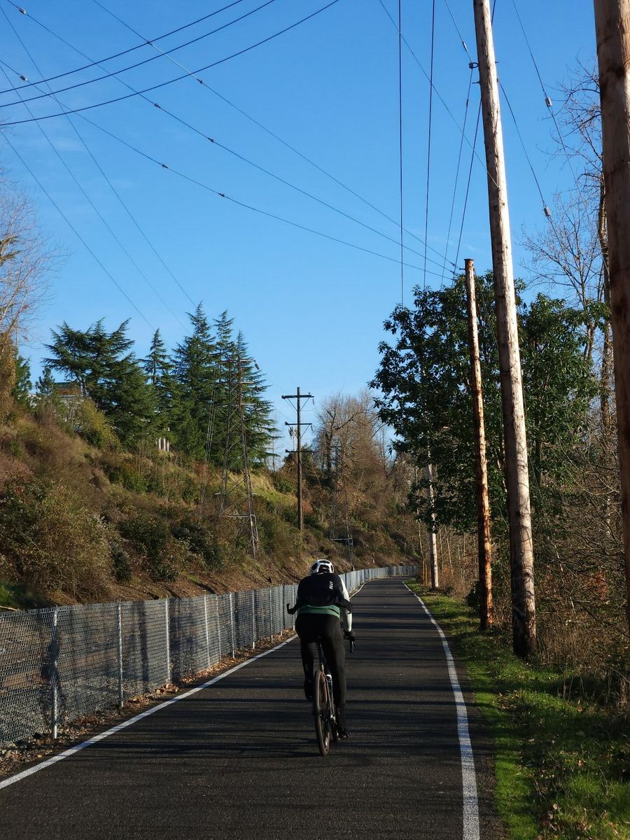 Rode along the Willamette River and paced a steam train excursion along the Springwater Corridor Trail.