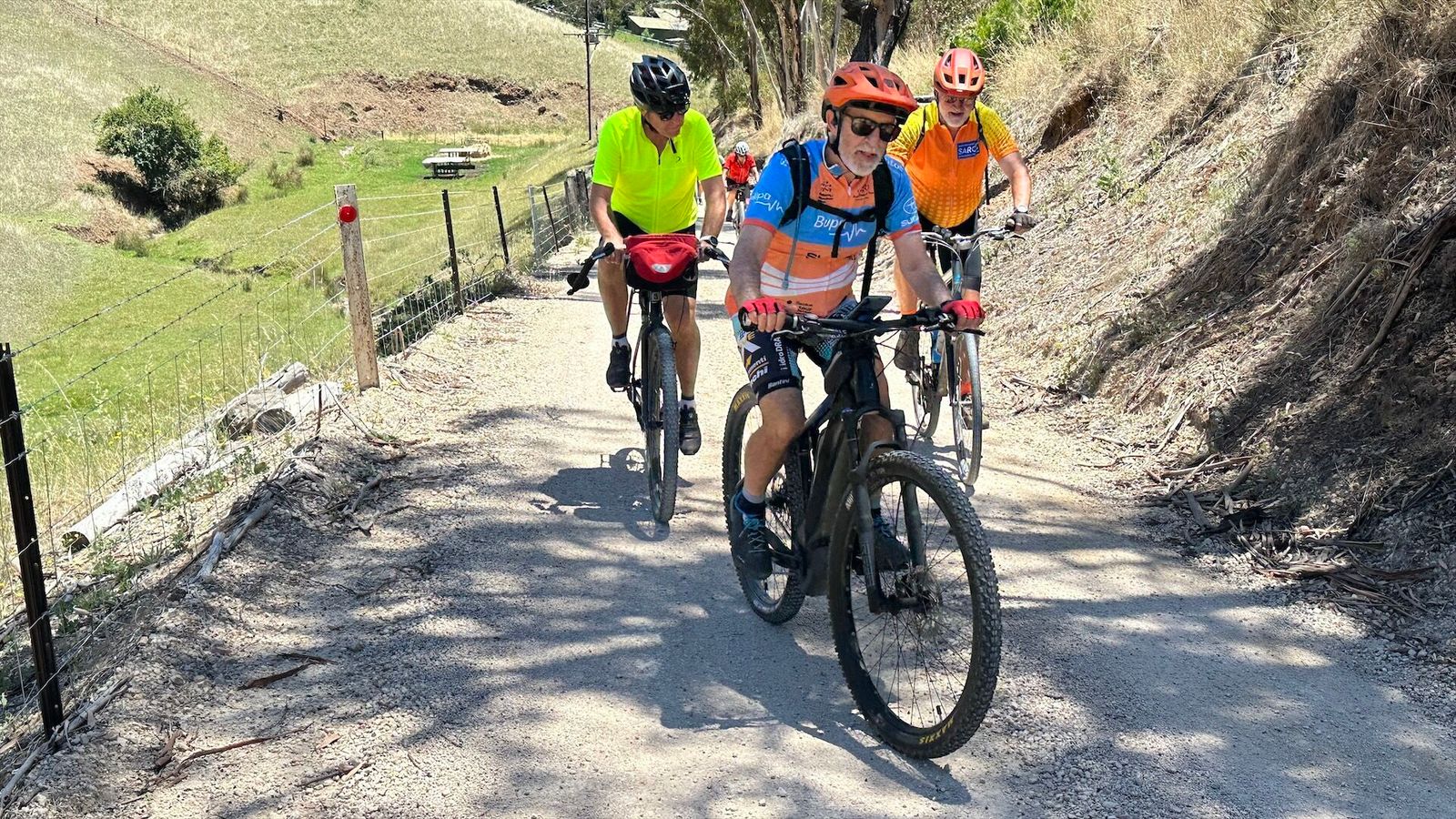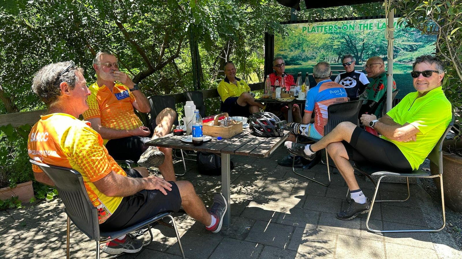 A very large group of 20+ riders turned up for this ride. We split into two groups. A glorious day - 25-30C, not a cloud in the sky and a nice cool breeze at the tops of hills.