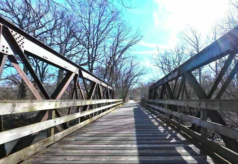Seven. Sunny & bright, warmer - temps in the mid 60's but very gusty and windy @ 20+ mph from the SW. Too windy and from the wrong direction for a road ride so I opted for a trip South, mostly on the FRT.