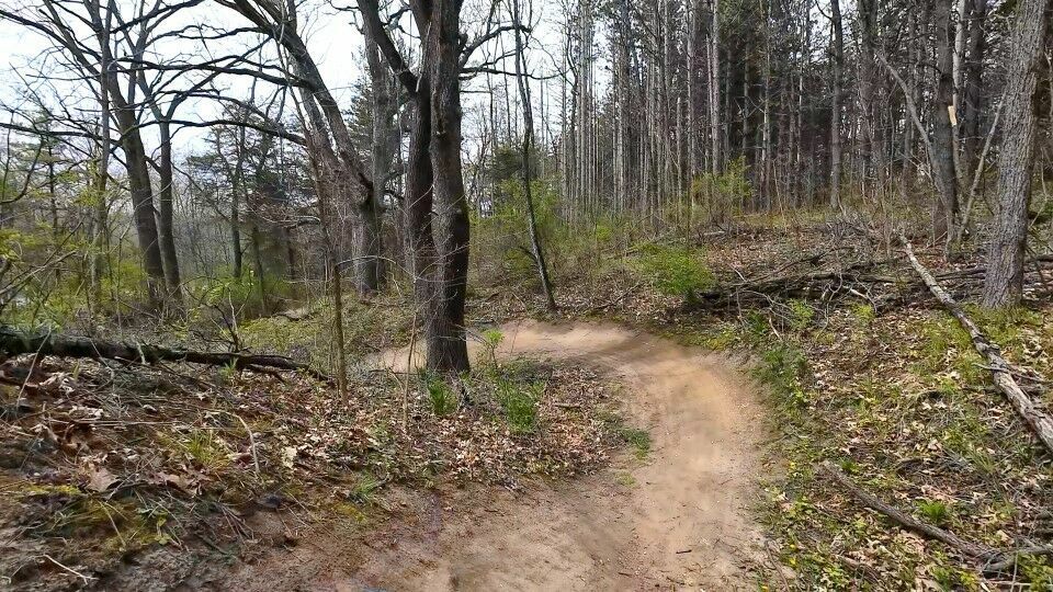 Trek Fuel 9.8. Mostly cloudy, cool - low to mid 50's, brisk 15-16 mph SE wind with gusts in the mid 20's. The main Snowflake trail was still closed so I did the Tike-oderoga, Pines and Yeti twice each, then took the K-D Line over to the West side on the Barb Wire, Little Wing and Rudie's Run. Then back over to do another run on the K-D Line.