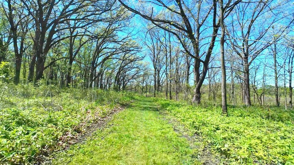 Trek Farley 9.6. Sunny and almost cloudless sky, warm - mid 70's, moderate SW winds, 8-10 mph. Official route was around a 60/40 split gravel & trails/pavement. I rode out to Afton Forest Preserve, riding mostly grass trails which were very slow with the new knobbies and the grass was a bit high. Plenty more trails to hit next time.