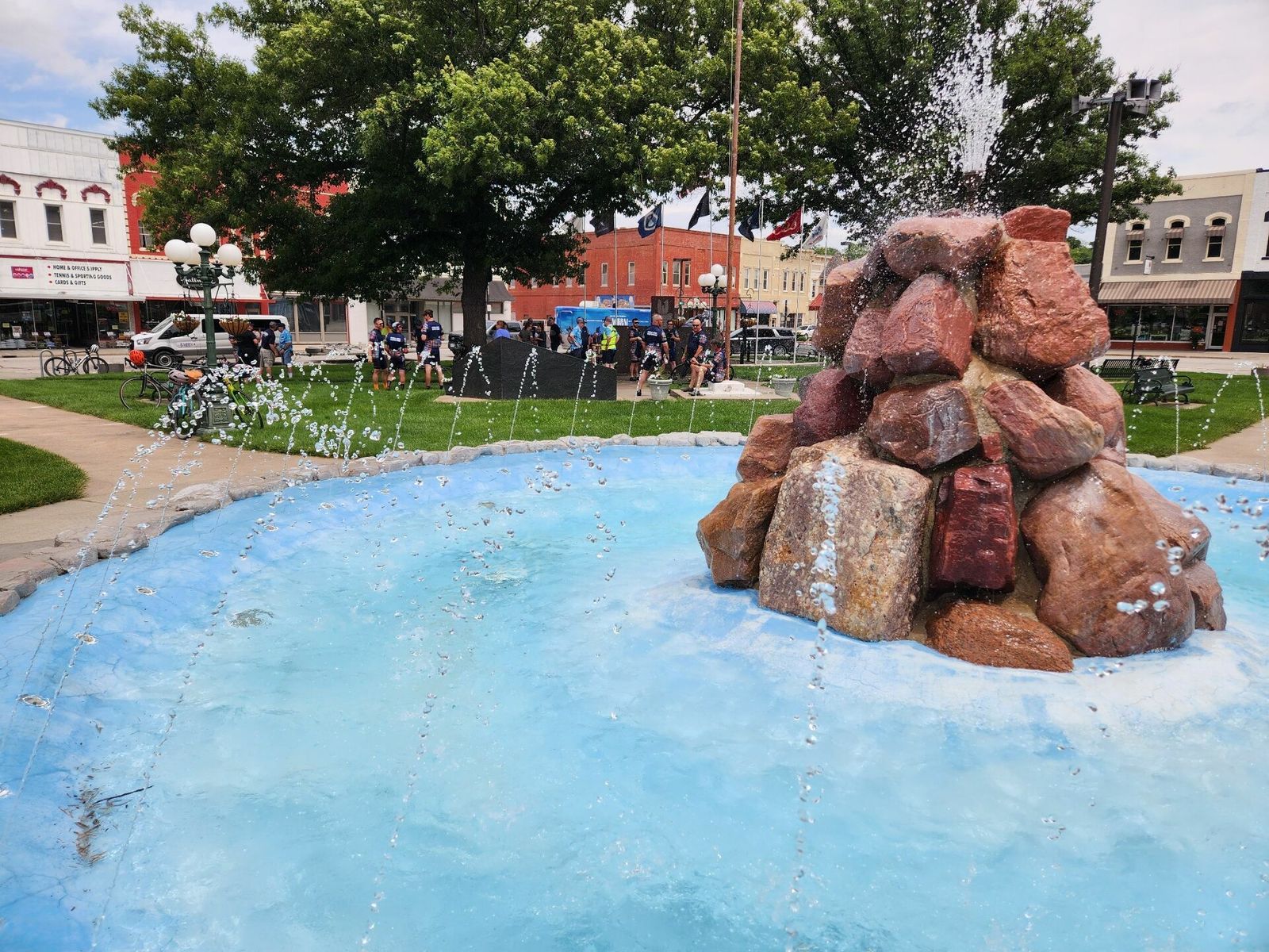 It was rainy morning, but it gave us a little extra time to talk with the folks in Silver City, and then the sun came out after lunch in Henderson! Great stop with some beautiful country roads into Emerson to see all the cool plans they have in store and then on to the home stretch of some decent rolling hills into Red Oak. Met with the committee in their beautiful Town Square, then off to scout the campgrounds and do some filming by the "famous" big pumpkin watertower. Great day on bikes!