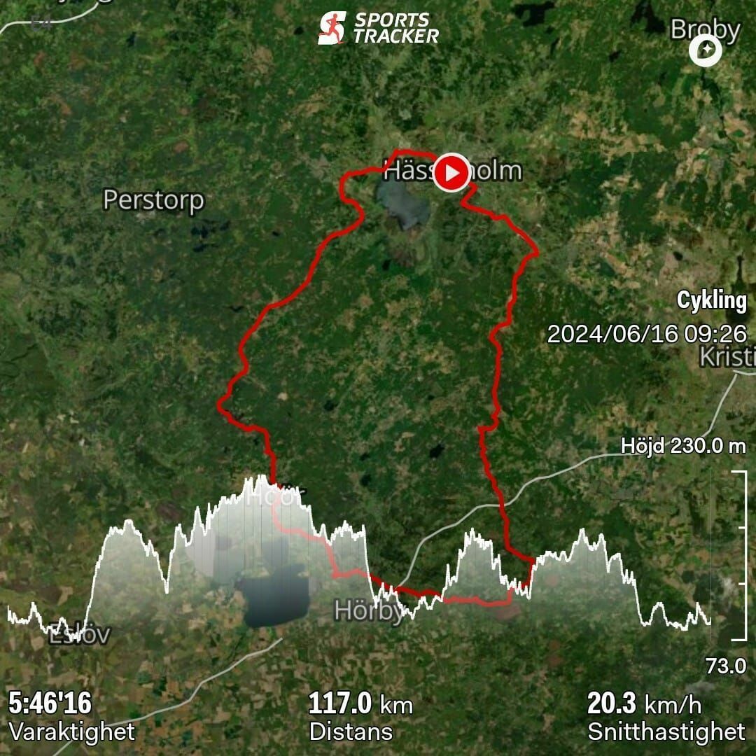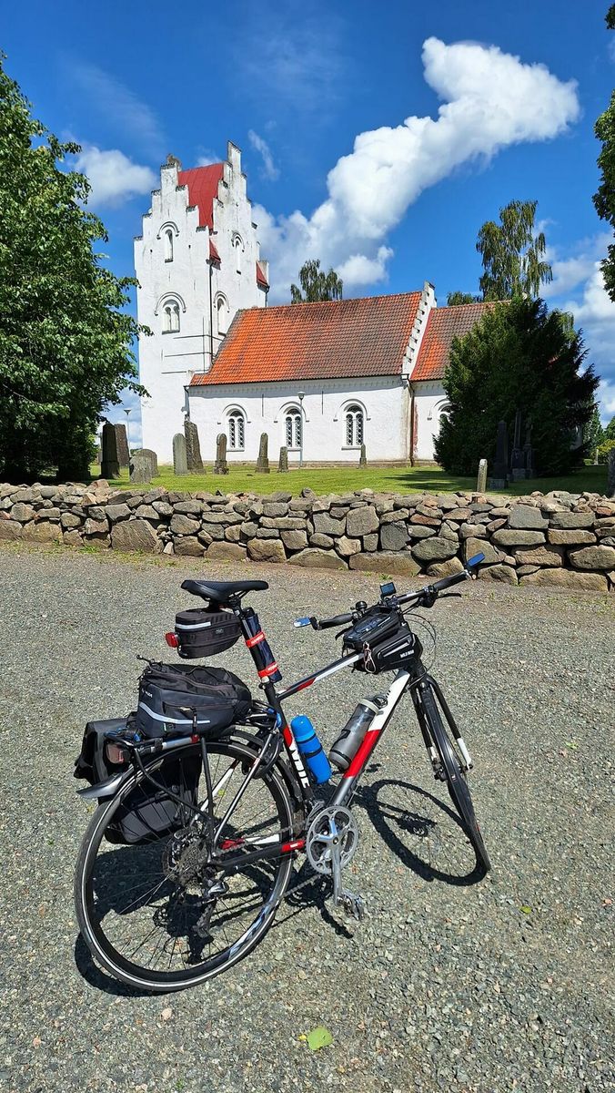 #Runda 46/-24. I dag var det ett perfekt cykelväder. Det bästa sen i maj. Så det blev en lite längre tur i dag. Det blev en sväng söderut till Fulltofta. Starten var lite kylig så det blev di långe och den vindtäte. Men redan efter den första milen åkte det av och det blev kortisar och tunnaste cykeltröjan. Färden gick via Lommarp, Rickarum, Linderöd, Svenköp här byttes motvinden ut mot sidvind, sydliga vindar. Fortsatte nu västerut till Fulltofta via Äspinge och Slagtofta. Besökte kyrkan i Fulltofta men den var stängd. Forsatte så norrut till Höör via Ludviksborg, här blev det lite längre lunchfika fick ta en busshållplats i brist på bättre komfort. Fotsatte till Hardys tänkte ta en glass men kön var alldeles för lång. Fortsatte nu hemåt det blev vägen via Skånes djurpark inte heller här blev det nån glass. Så det fick det bli när jag kom hem. Fortsatte vidare grusvägen längs Dagstorpssjön och upp till Norra Rörum och hemåt via Isakstorp passerade utan stopp Agdas stuga, in till stan via Mjölkalånga, Finja och Pukehusvägen, Norregatan och Tredje Avenyn svängde in på Frykholmsgatan hemma efter en fantastisk fin dag på cykeln med flera nya vägar.
