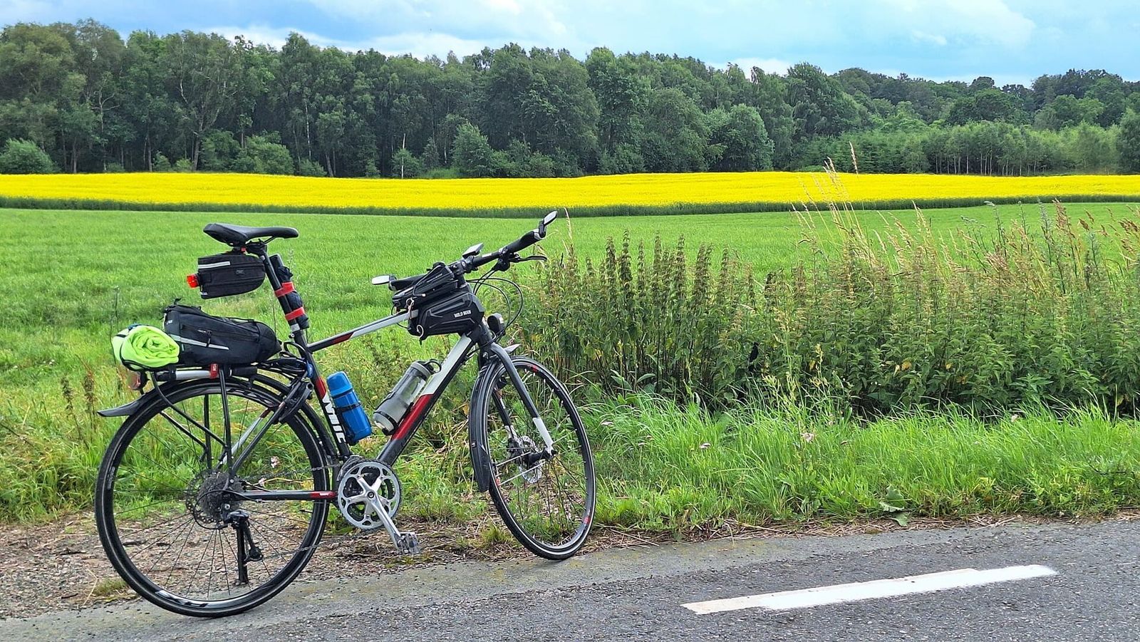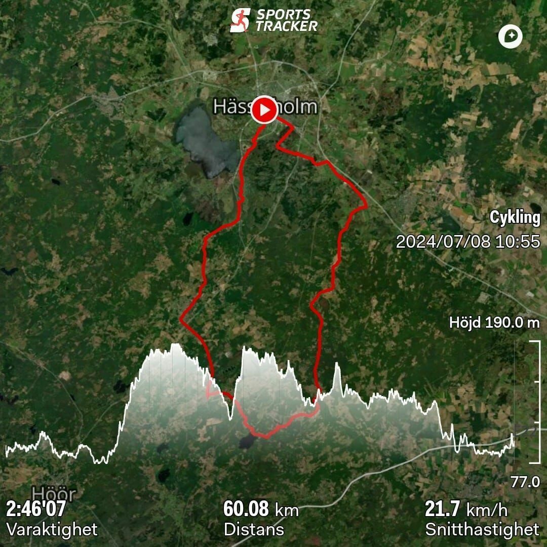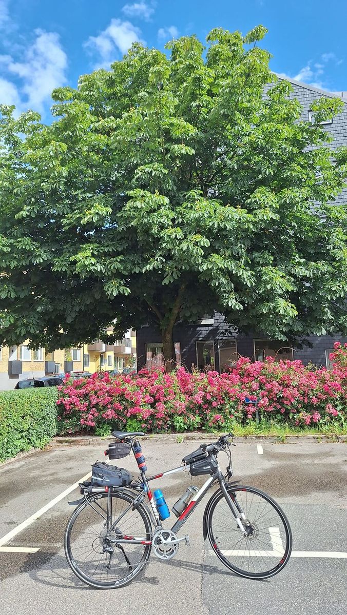 #Runda 56/-24. I dag blev det turen till Bosarpasjöns badplats och tillbaka. Sedvanlig start i dag vid Kastanjen. Tog vägen via Lommarp, Nävlinge, Rickarum här strax innan Rickarum kom regnet och det höll I sig en dryg halvtimme inte så häftigt men väldigt vått. Hade tur I dag igen att kunna ta skydd. I dag under ett par väldigt stora och täta bokar. Behövde inte använda paraplyn. Det blev en lite kylig väntan, tempen sjönk till +15°en kort stund. Men solen kom tillbaka och jag kunde fortsätta helt torr in i Rickarum och vidare till Bosarpasjöns badplats. Här var det dags för lite lunchfika i solen. Efter avklarad fika fortsatte jag vidare till Häglinge och sen vidare till Sösdala och hemåt över Brönnestad ner till Tormestorp och in i stan förbi Stall Annedal och så Maglegatan och Kristianstadsvägen in på Frykholmsgatan hemma. En bra liten tur i dag igen trots regnavbrottet.