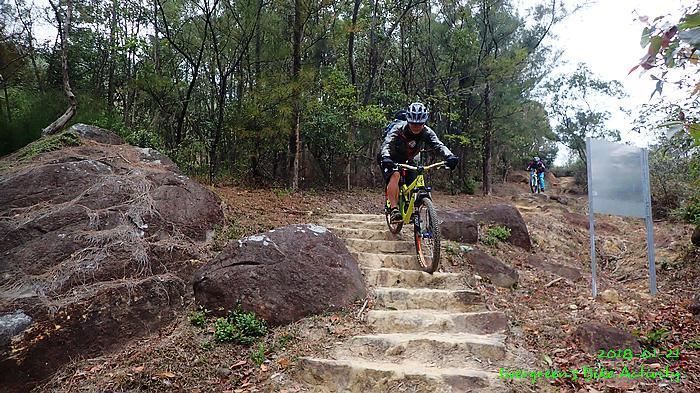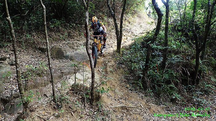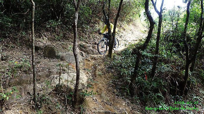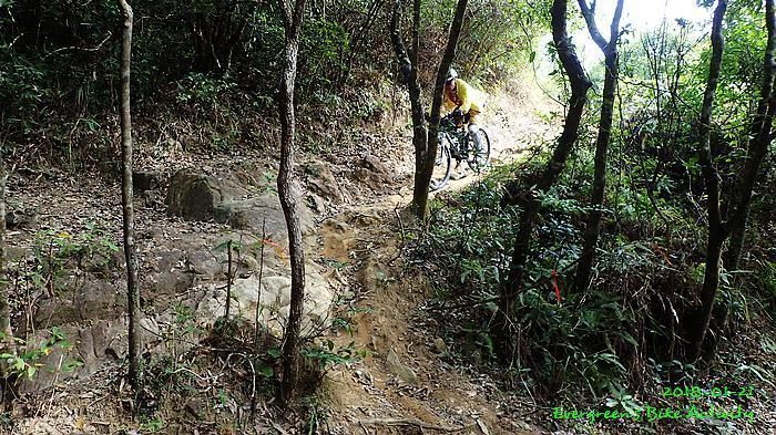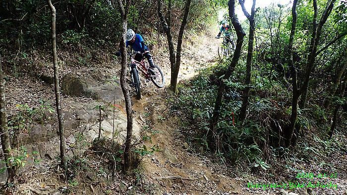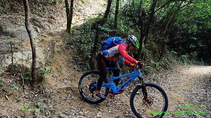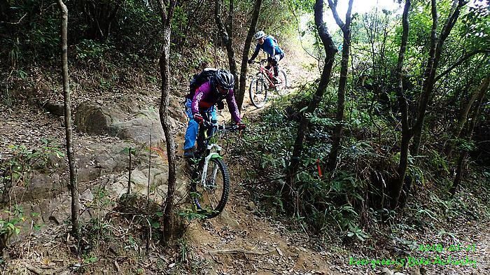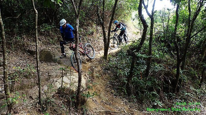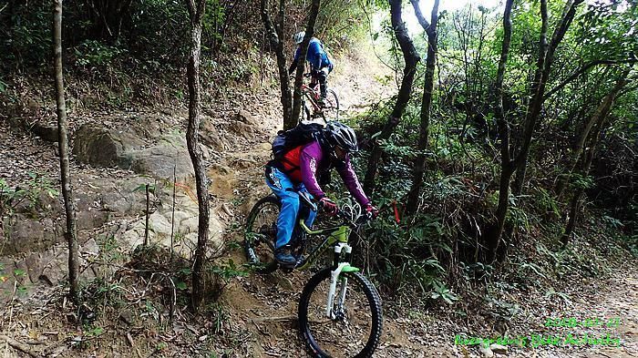 人齊後繼續,順利到大石板,順利到吉慶橋。在騎往河背途中,有車友提起一條甚少踩過的路線,是落到河背引水道左轉,推抬托一少段上山,落山到大欖隧道轉車站。因為大部份車友沒踩過,眾人都話好,