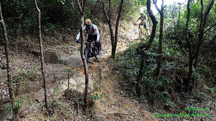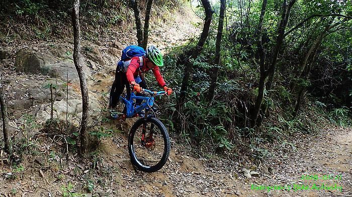 新路線在上山部份,基本上是推抬托,落山部份好多陡滑的髮夾彎或梯級。我不熟悉路線,比較保守,落山都是推的多,踩的少。