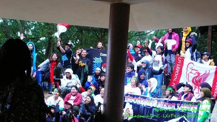 今天到回歸亭時,剛好遇到大群印尼家庸的登山活動,她們正拍團體照,並唱國歌。初時,聽音調好像國際歌,後來聽著又不是,聽到歌辭中有 Indonesia,相信是國歌吧。