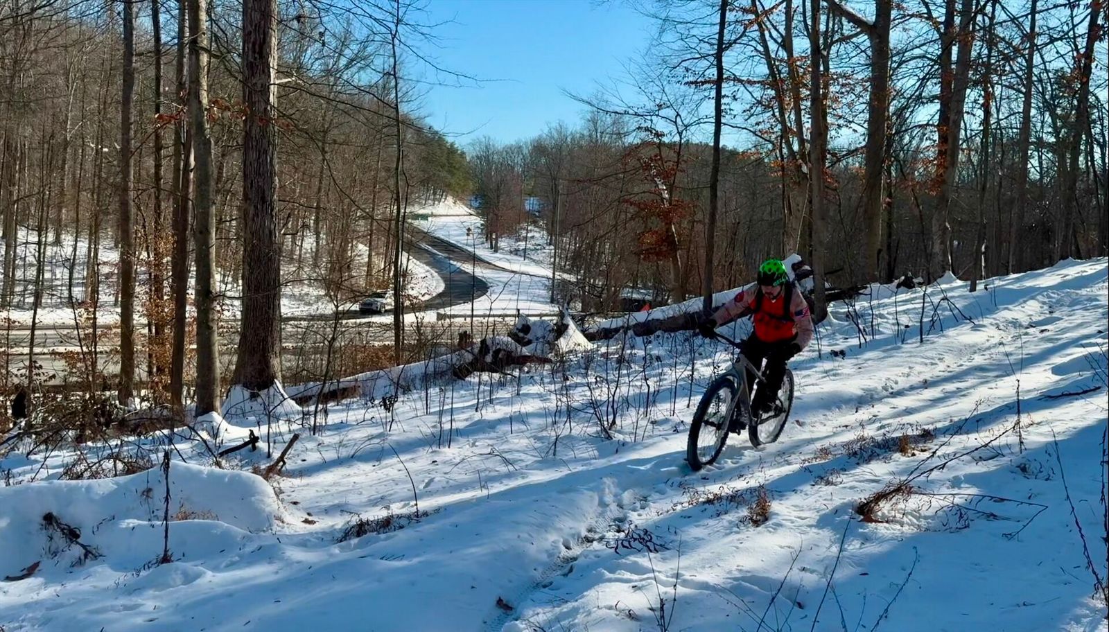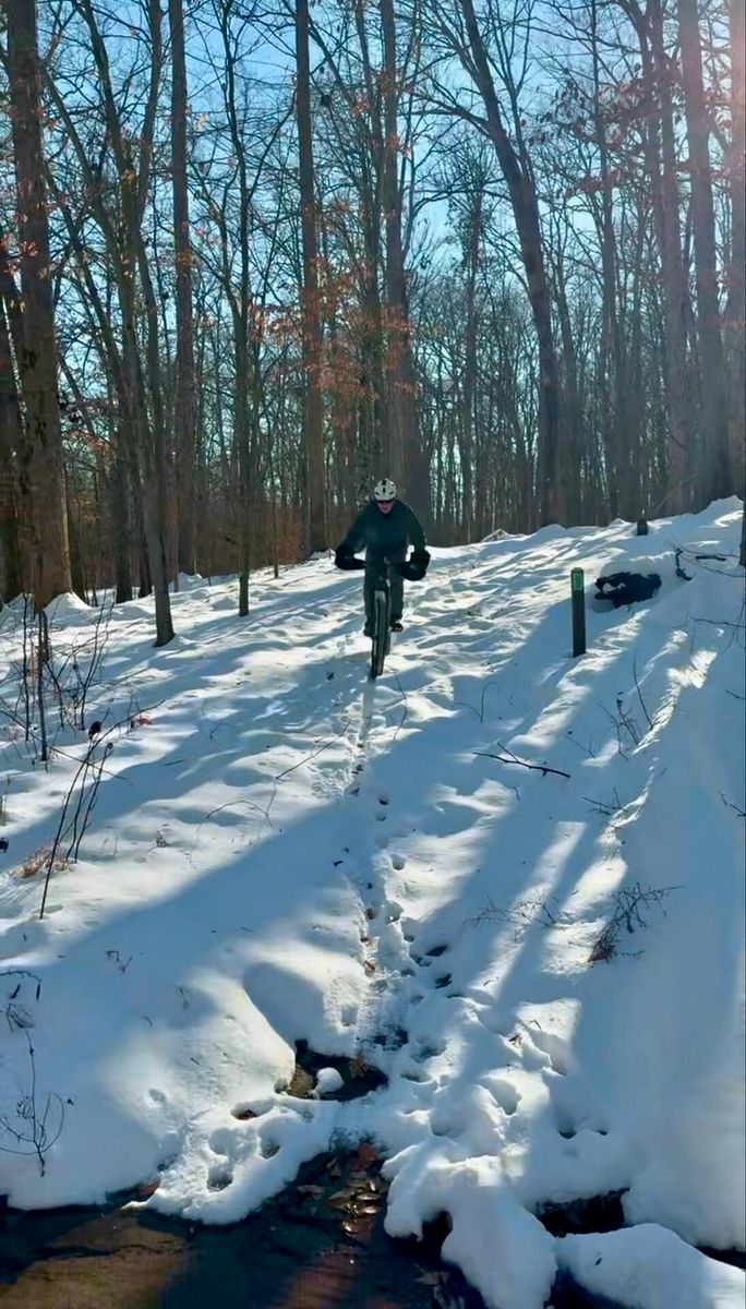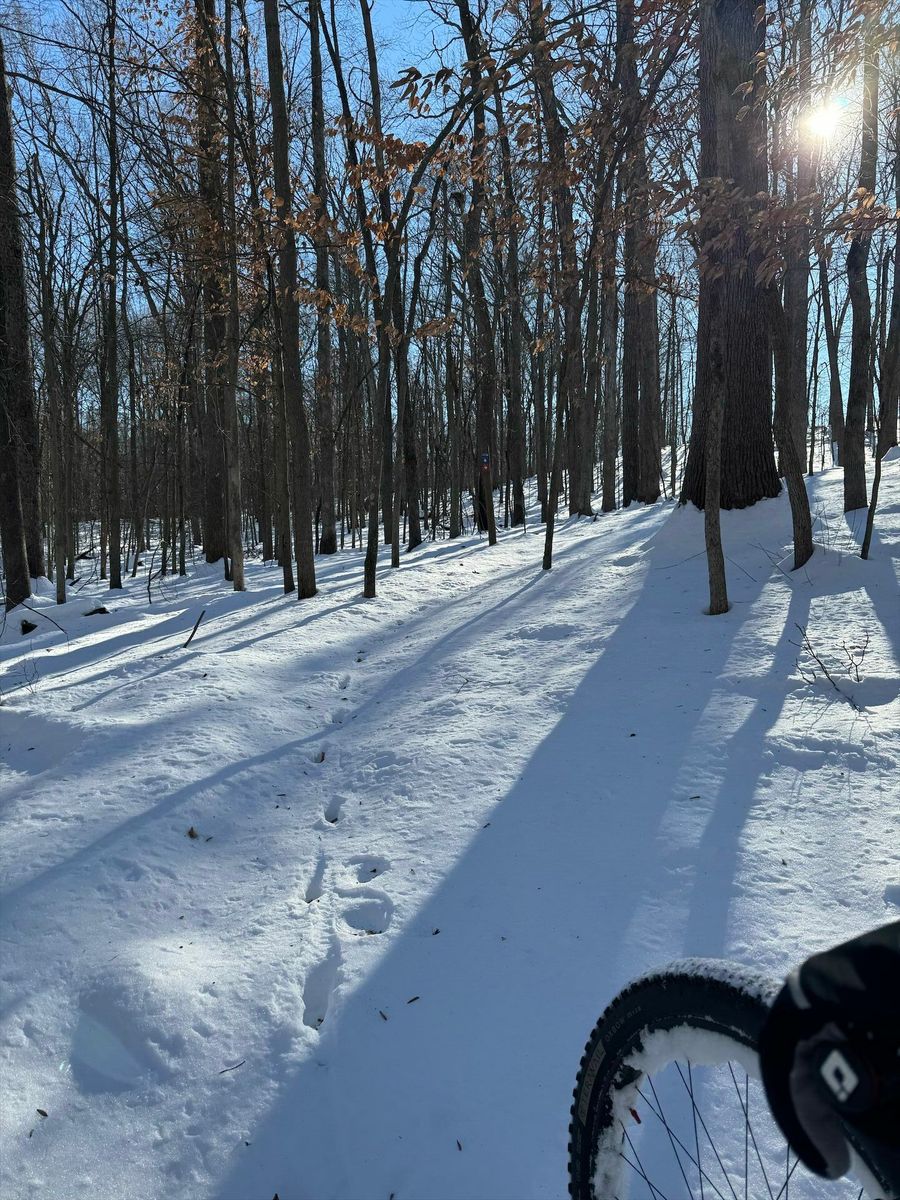Headed out to see what the trails were like after the winter storm. Well, snowy… tough ride. Hard base with a 2” - 6” layer of snow, depending on location. Super difficult to get any traction, and once we got going it was super squirly. Glad we went out though.