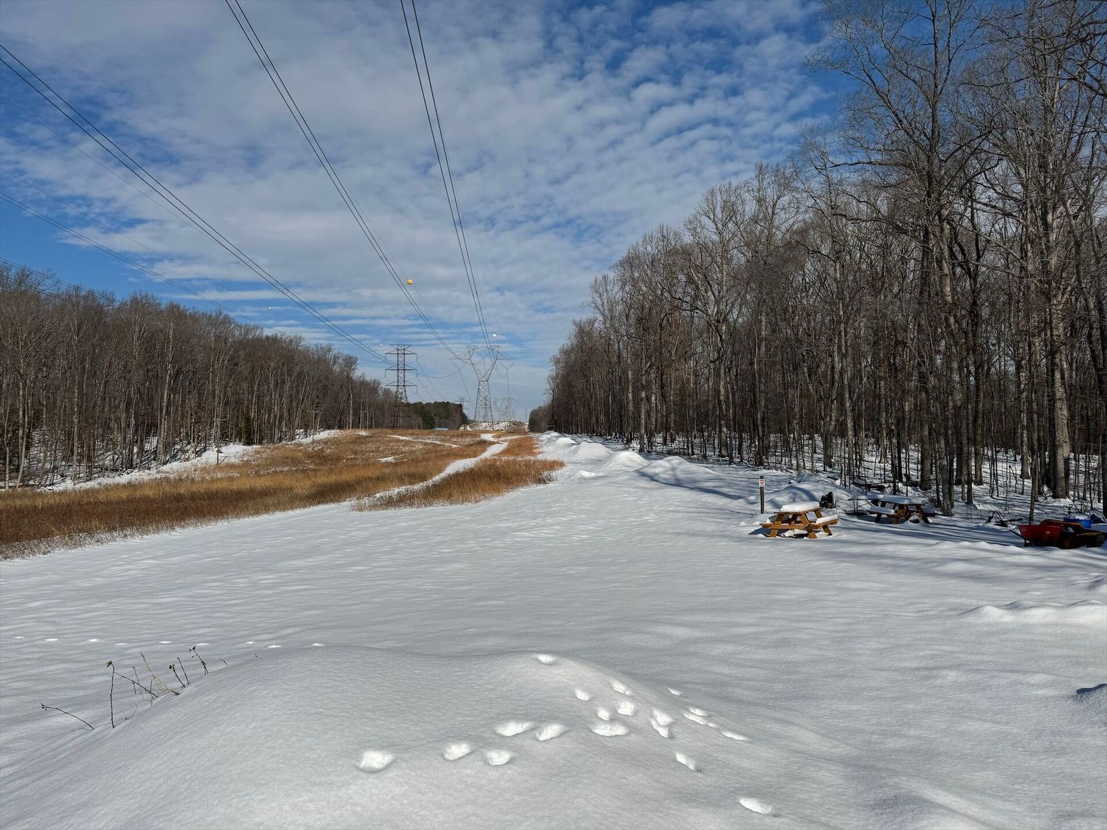 Coolest thing about the hike was seeing that other than our tire tracks from the other day and a handful of footprints, most of the traffic on the trail is from the local critters :-)
