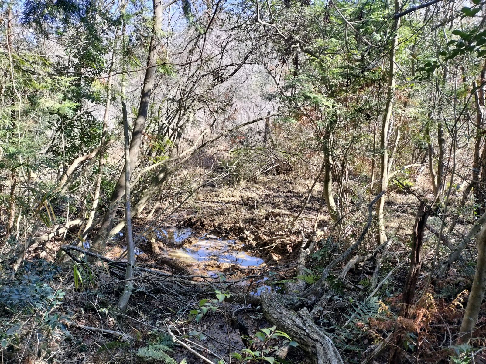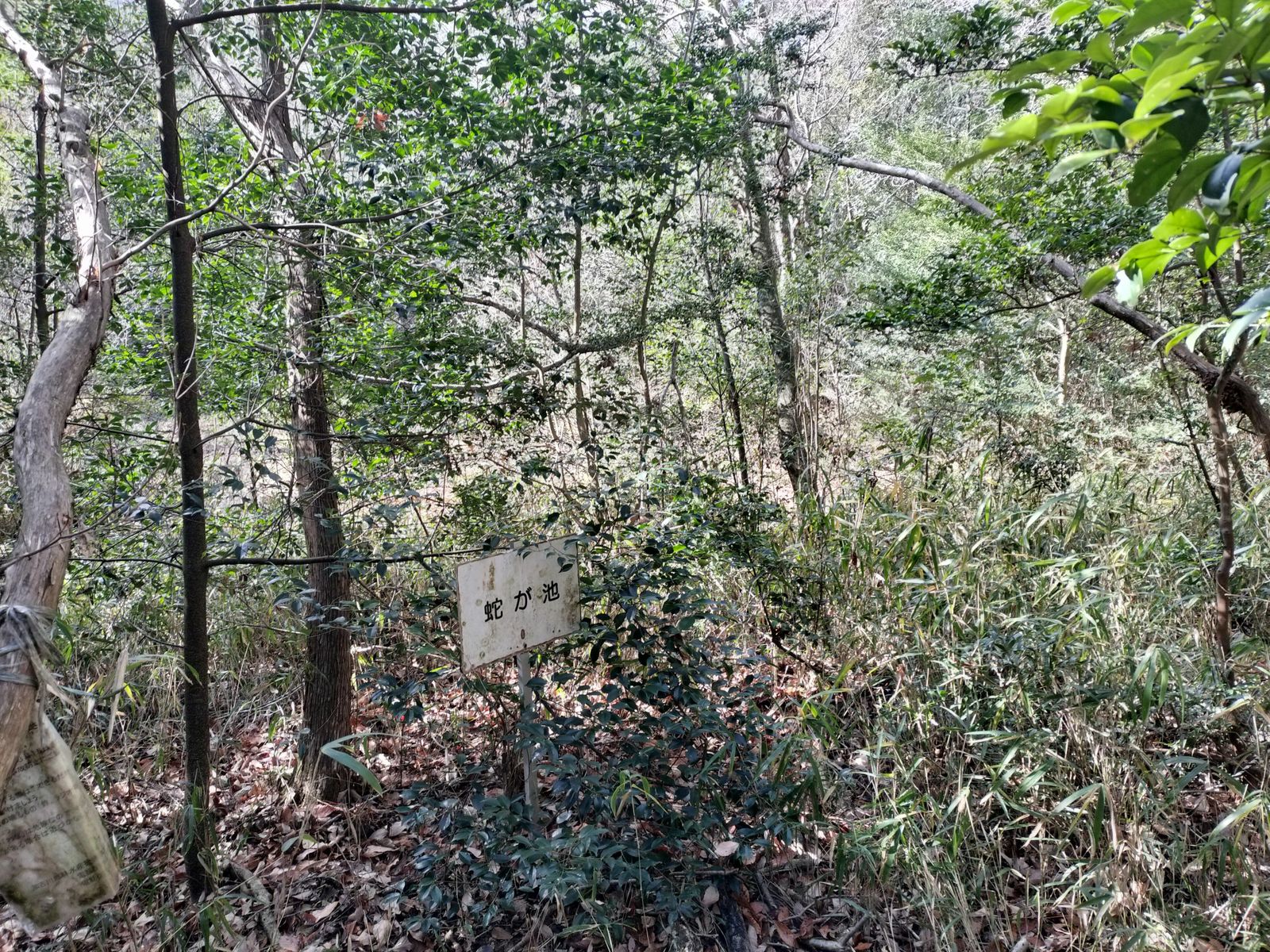 山中にある「蛇が池」は以前は池周りコースが整備されていたが維持する人達が居なくなったのか藪になって満足に歩けなくなっている。それでも巳年ということで無理やり突破して周回する。