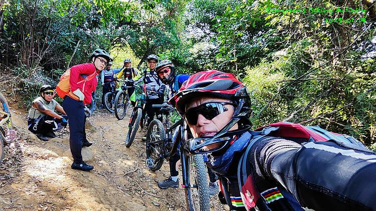 可能是之前接連三天的高強度活動,體能未復,今天踩山是表現差劣,多次在沒難度的地方摔倒炒車,摔到後來失去信心,多處窒步;多得車友們前後看顧與鼓勵,完成騎行。