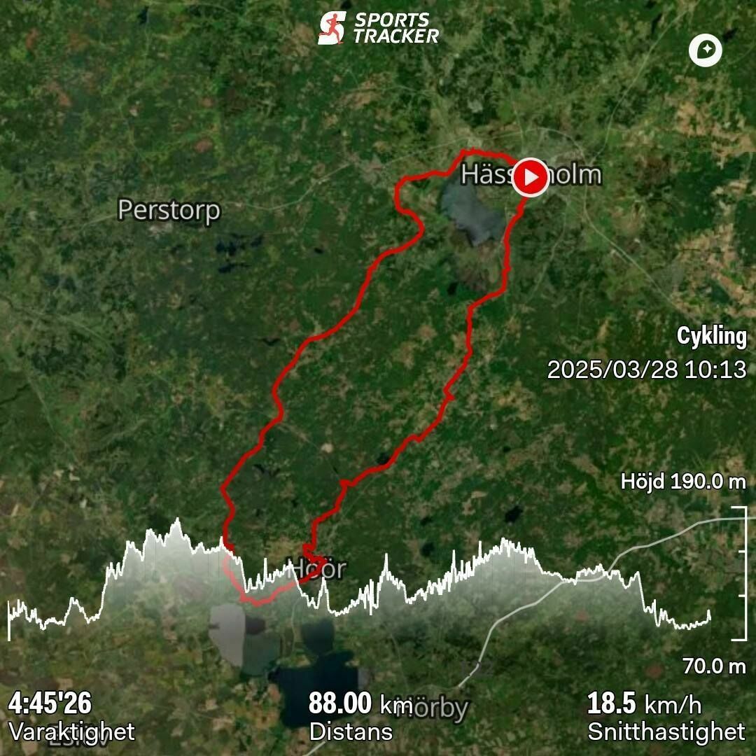 #Runda 17/-25. Första vårdagen med över 15° bjöd på sol från en molnfri himmel. Men ganska blåsigt, dagens runda gick till Höör lite tungt på nervägen då det var en ganska frisk motvind. Det blev via Tyringe, Norra Rörum, Hallaröd och Ormanäs. Där vände jag tillbaka upp och in i Höör.
