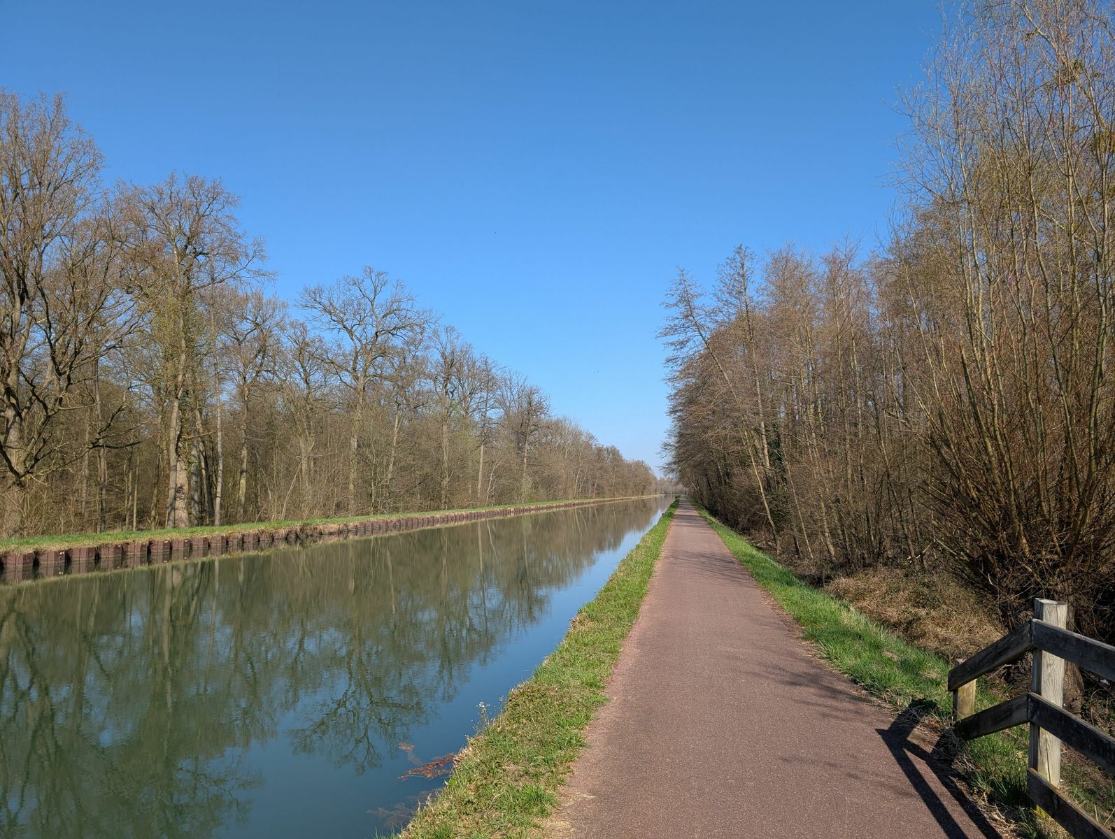 Diese Route ist der erste Teil des Tages. Zuerst ging es durch Strasbourg, was schon recht anstrengend war. Zumindest gab es überall Radwege, so dass ich nicht auf der Strasse fahren musste. Angenehm wurde es dann, als ich den "Canal de la Marne au Rhin" erreicht habe. Direkt neben dem Kanal führte mich ein asphaltierter Radweg von Strasbourg bis nach Mommenheim, wo ich auf den Zug gewechselt bin.