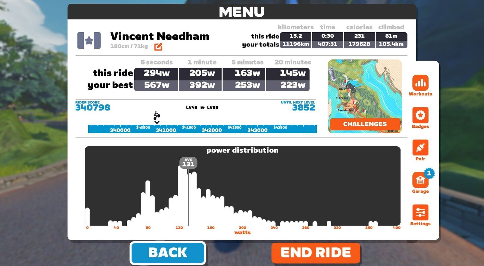 | Avg Watts: | 134 ( with 0s) |