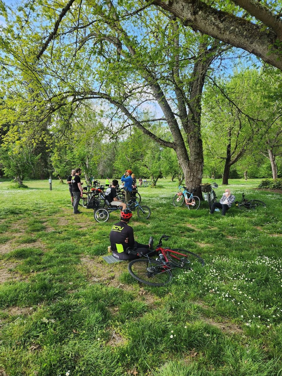 Ride from Salem out to Willamette Mission State Park and back. The railroad tracks on Front St. made riding on that section a little tricky. The tracks ran parallel but then also crossed at an angle.