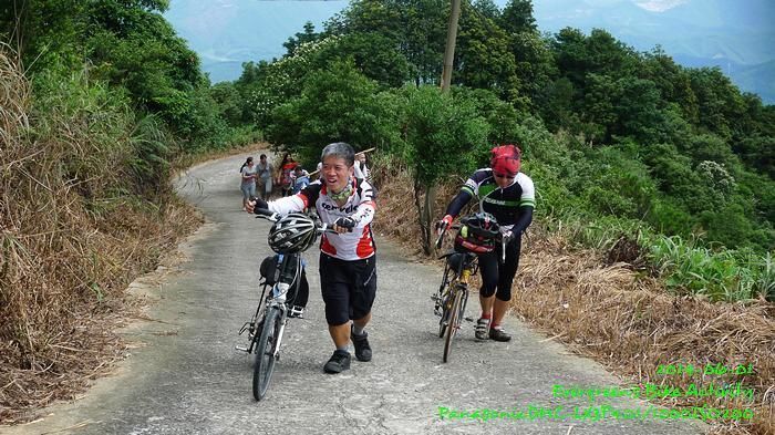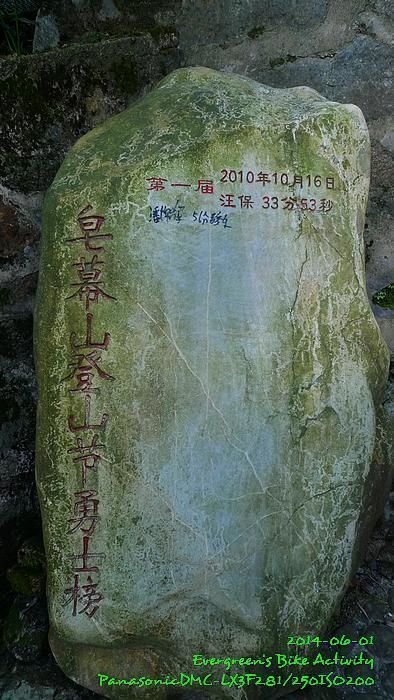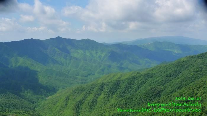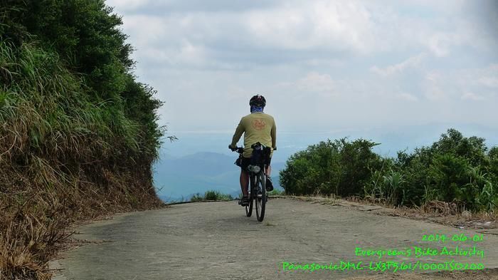 在我騎慣香港的路線來說,上皂幕山的路,斜度算是一般,在過了 600m 的小賣部後,那才叫做有多段算是有挑戰性的斜路;斜度約略相當於九龍坑山『好路』的部份。因為天氣相當熱,我在這部份共休息了五、六次才完成。亦因為天氣問題,車友伏哩哩騎至約 300m 放棄,回程落山下士多等我們。皂幕山不高,只 804m,但係方圓四周景觀非常好,好有大山的氣派,正是『山不在高』的好例子。