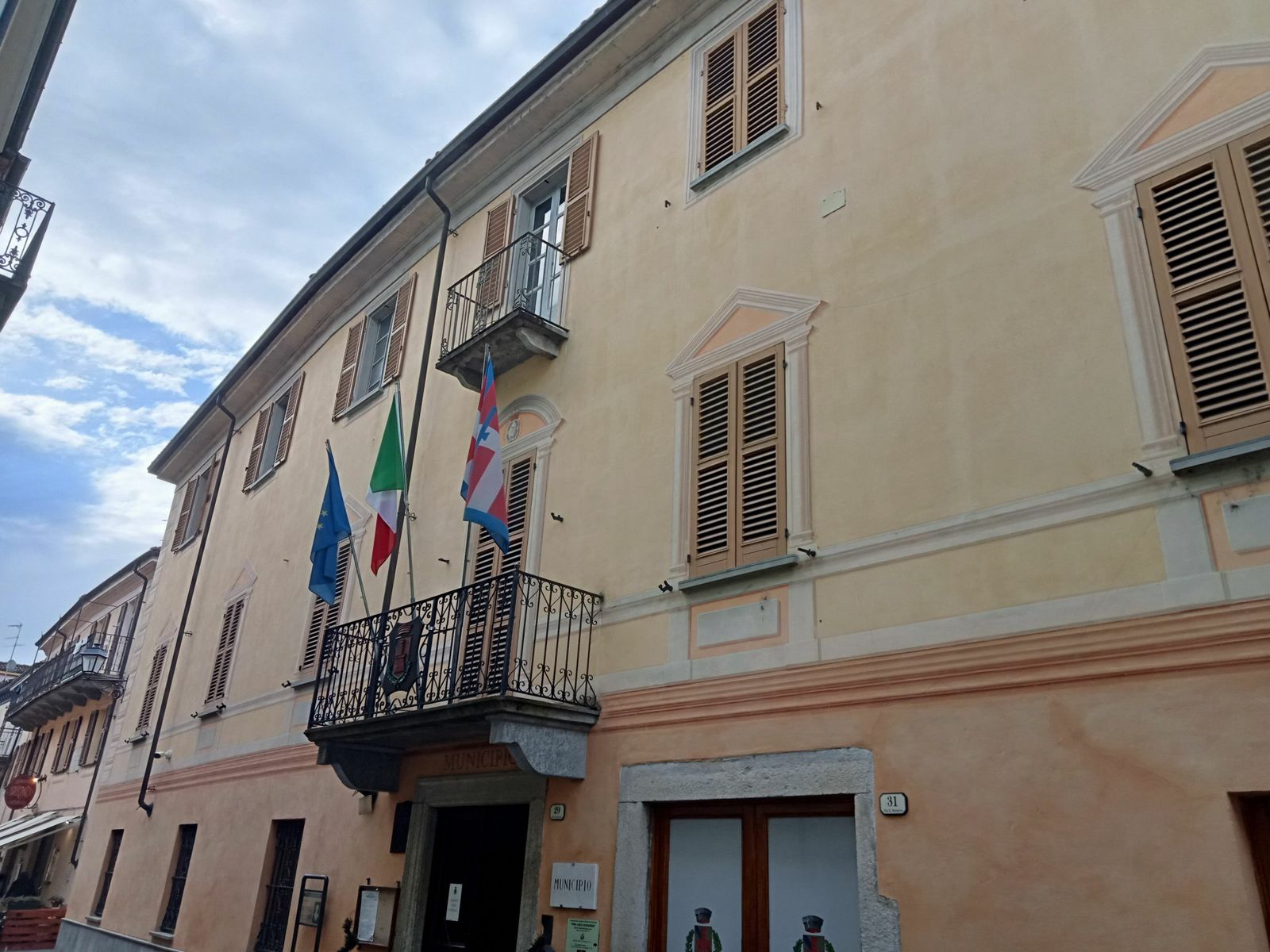 Proseguo il giro e raggiungo Bistagno passando per la piccola strada di Regione Cartesio che scorre parallela alla SS30, altra foto e via verso Montechiaro Piana, dove incontro la prima salita seria della giornata, la strada per Denice, il museo a cielo aperto, dove alla finestra del Municipio è esposta la sola bandiera italiana. Altra fotografia e mi precipito verso valle percorrendo una strada secondaria senza nome,che ricordo di aver fatto in salita qualche anno fa e non la farò mai più.
