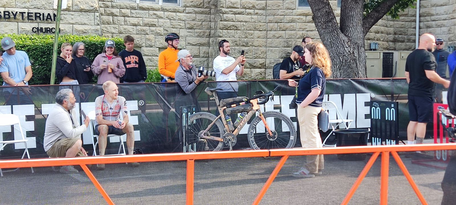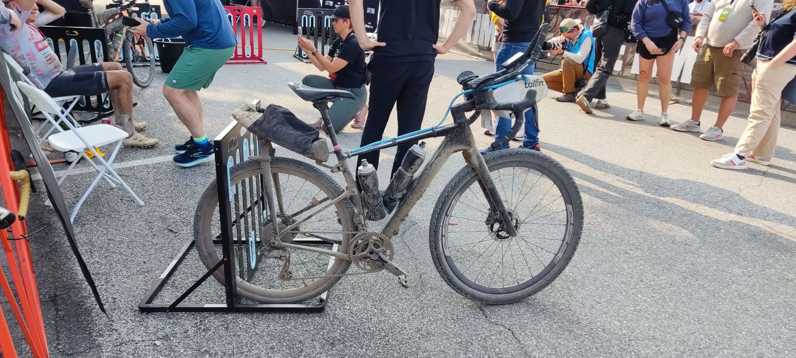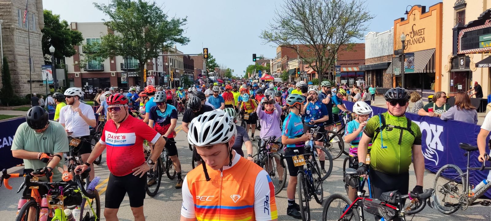 A beautiful day for a nice, leisurely little ride around Emporia with a few thousand of my closest friends! About 4100 of us gathered on Commercial Street for a bit of gravel grinding. Since I was in the short 25 mile race and it was a lovely day, I went at it fairly hard. My full 26.6 mile course time was 1:52:47, for a pace of 14.15 mph. That placed me overall 114 / 281 (40.6 percentile) or among men at 81 / 159 (50.9 percentile). I'll take that. I rode the MTB, a last-minute decision forced on me when the Tricross front mech developed serious issues after Cottonwood, where is was rather loose. Garmin credits me with 1.71 W/kg avg power and 6.19 W/kg max power, and a normalized power of 144 W. That's up a bit from Cottonwood's 137 W normalized power, admittedly over a longer course. For all the people the event was amazingly chill. Easy parking, lots of food and many well-known cycling vendors.