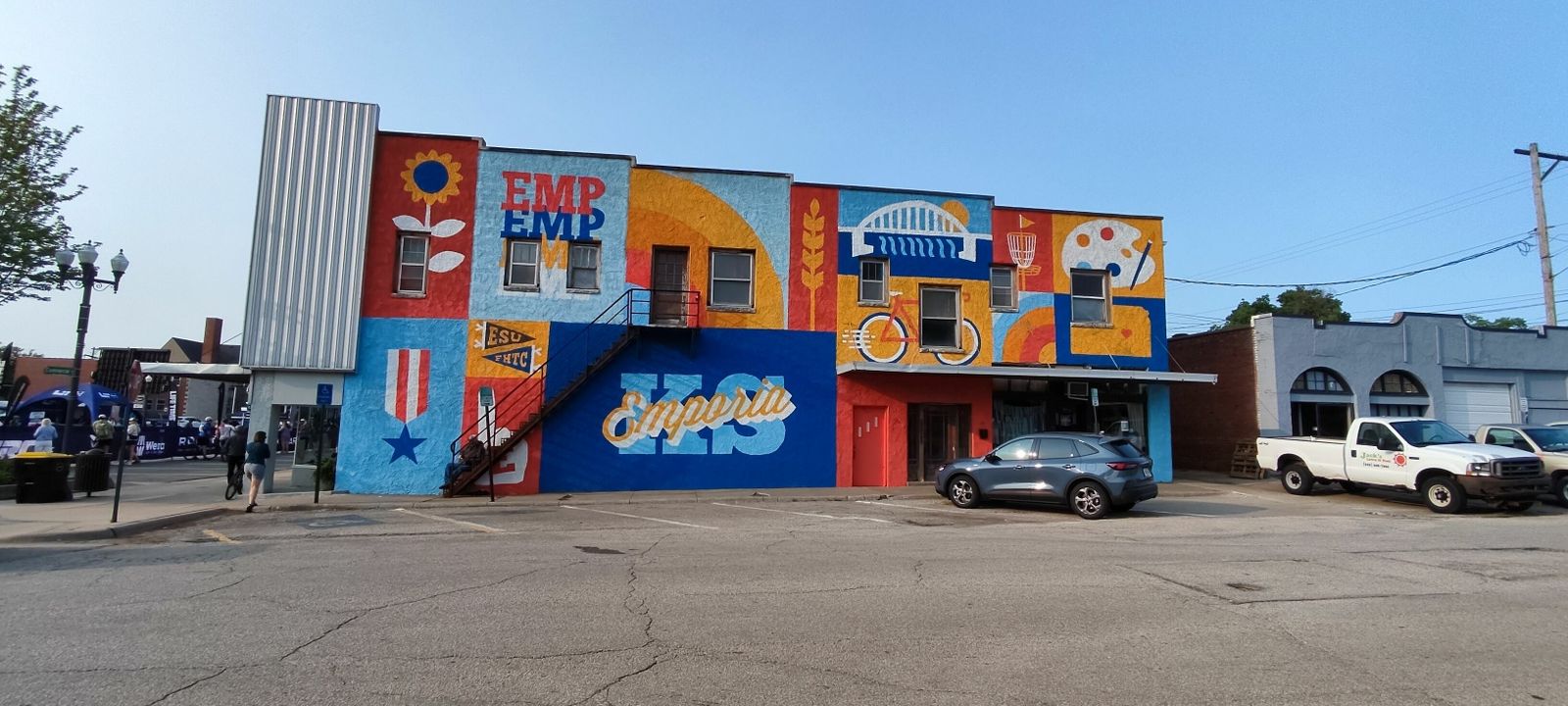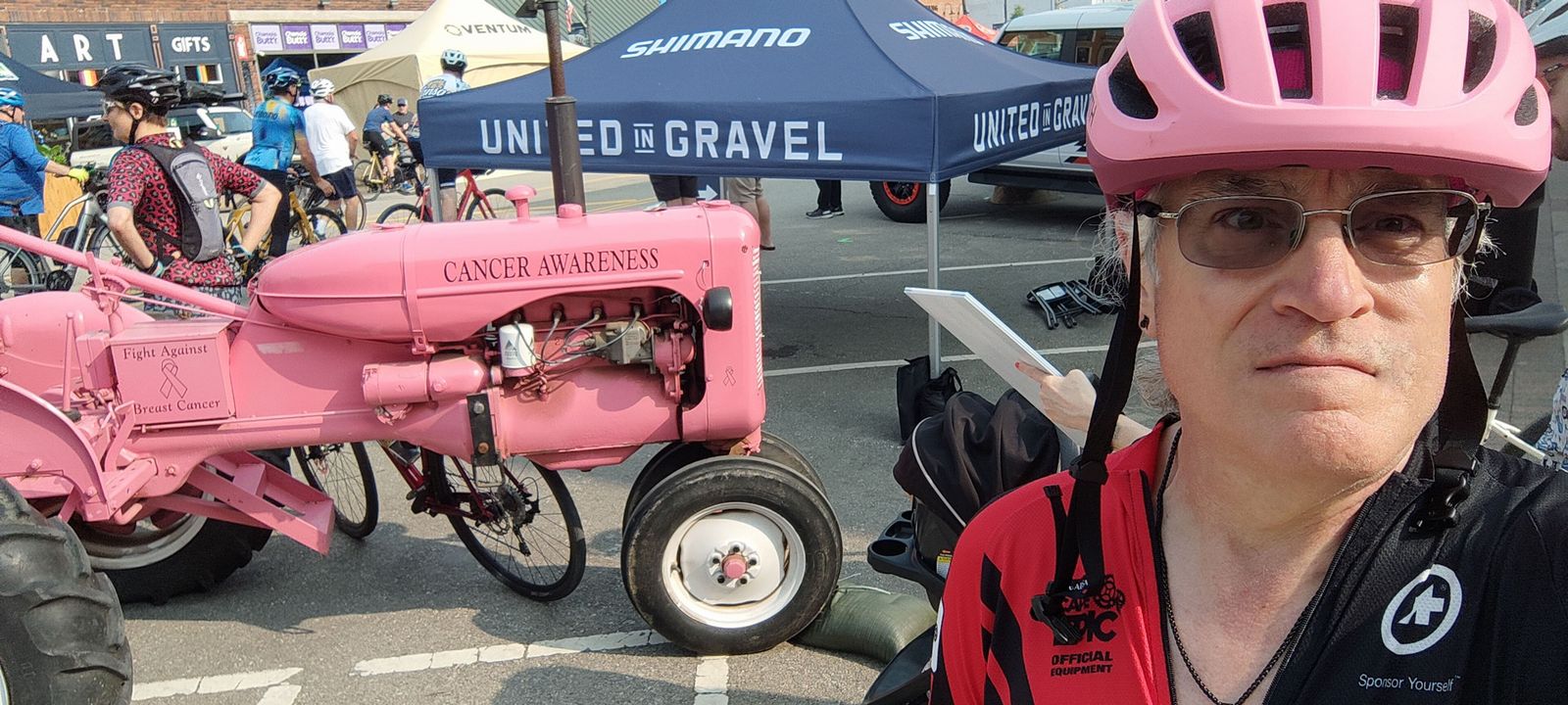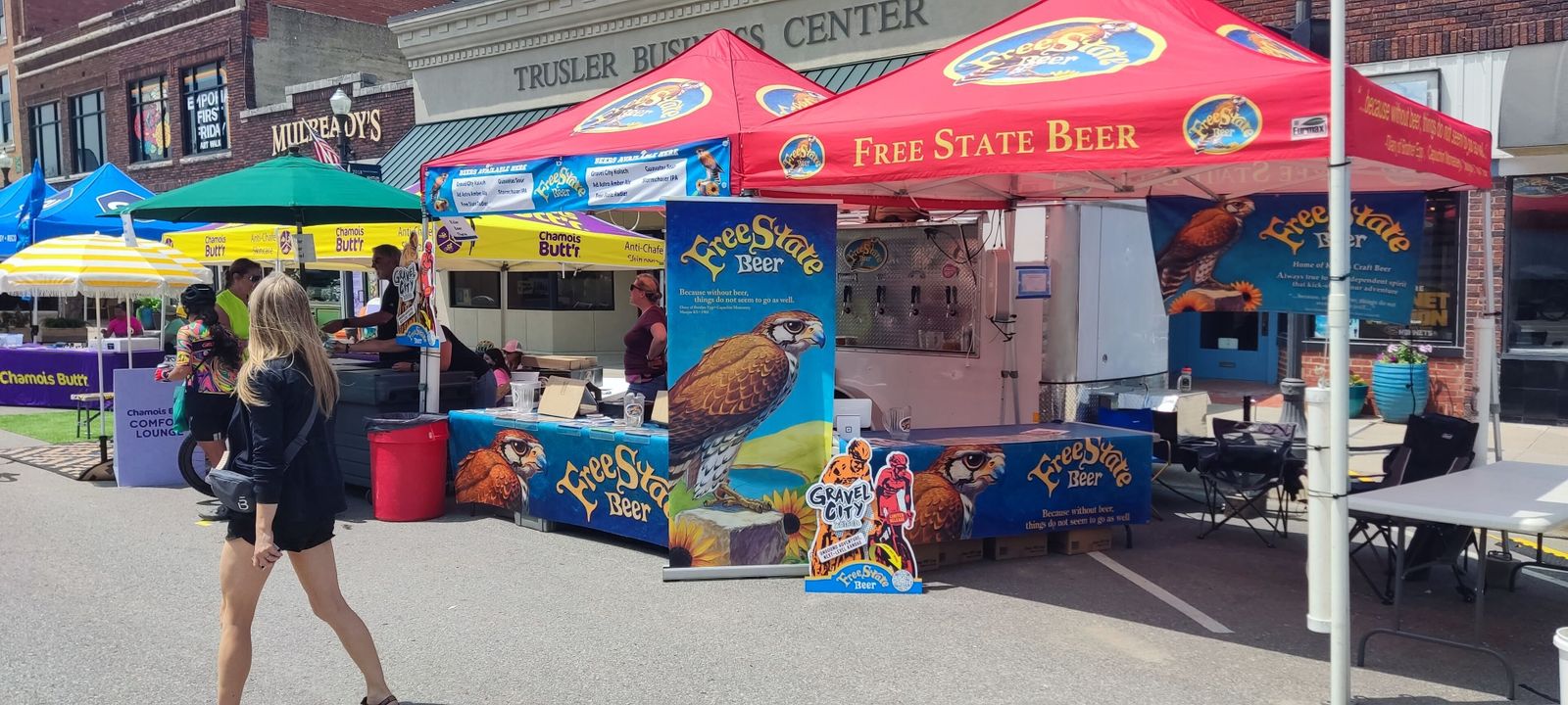 A beautiful day for a nice, leisurely little ride around Emporia with a few thousand of my closest friends! About 4100 of us gathered on Commercial Street for a bit of gravel grinding. Since I was in the short 25 mile race and it was a lovely day, I went at it fairly hard. My full 26.6 mile course time was 1:52:47, for a pace of 14.15 mph. That placed me overall 114 / 281 (40.6 percentile) or among men at 81 / 159 (50.9 percentile). I'll take that. I rode the MTB, a last-minute decision forced on me when the Tricross front mech developed serious issues after Cottonwood, where is was rather loose. Garmin credits me with 1.71 W/kg avg power and 6.19 W/kg max power, and a normalized power of 144 W. That's up a bit from Cottonwood's 137 W normalized power, admittedly over a longer course. For all the people the event was amazingly chill. Easy parking, lots of food and many well-known cycling vendors.