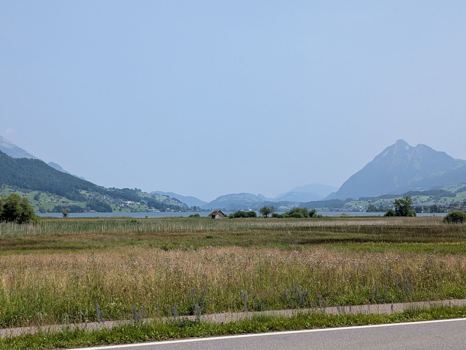 ℹ️ Heute hatte ich Glück, es war deutlich weniger Wind wie gestern. Also habe ich mich auf die eigentlich für gestern geplante Tour um den Sarnersee gemacht. Dort war ich schon lange nicht mehr. Die Lopperstrasse am Alpnachersee (ein Seitenarm des Vierwaldstättersees) ist nicht gerade angenehm zu fahren. Aber wenn man es erst mal nach Alpnachstad geschafft hat, ist die weitere Fahrt in das Tal hinein eine Augenweide. Sehr empfehlenswert!