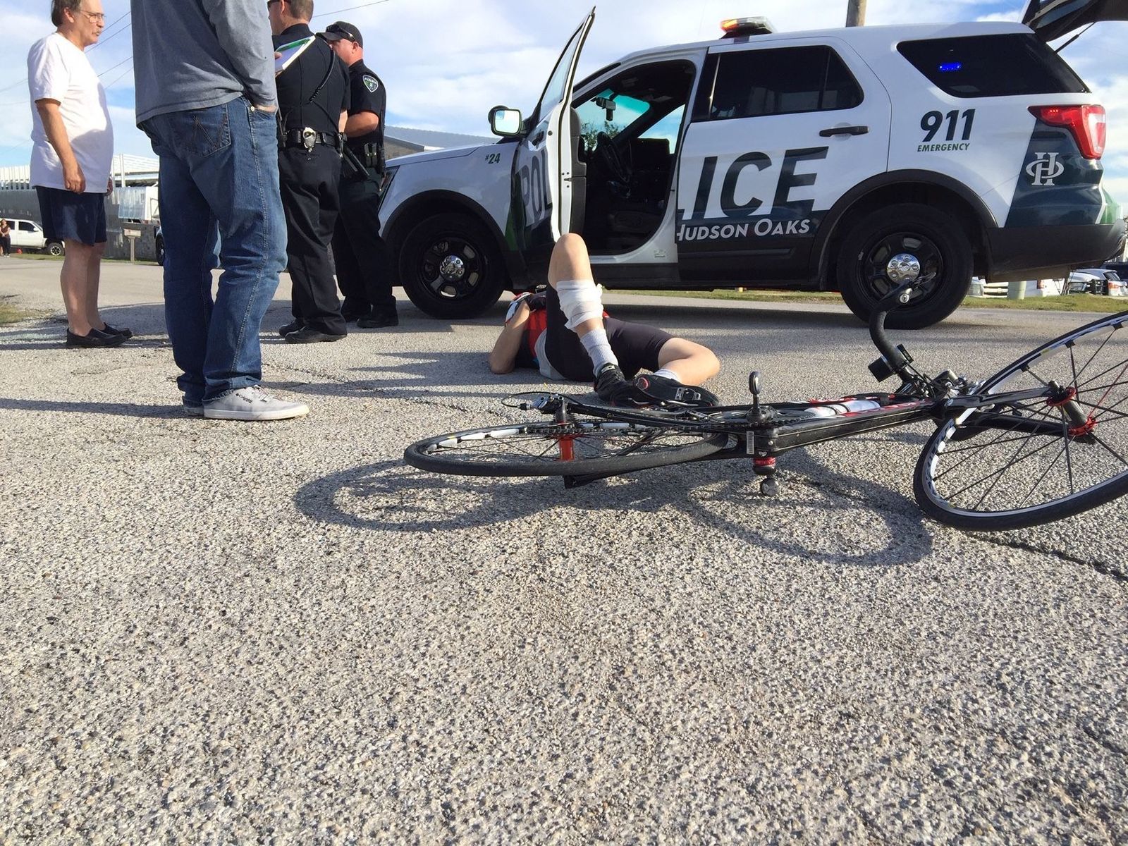With Wendy. German Shepard named Harley bit me on right calf and caused me to crash. Broke left femur.
