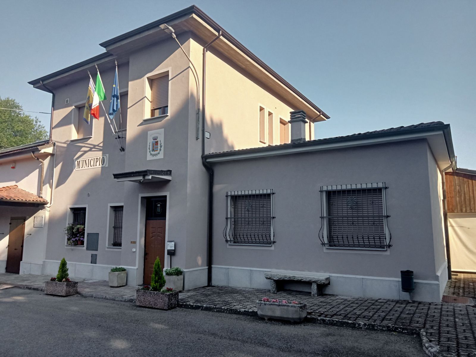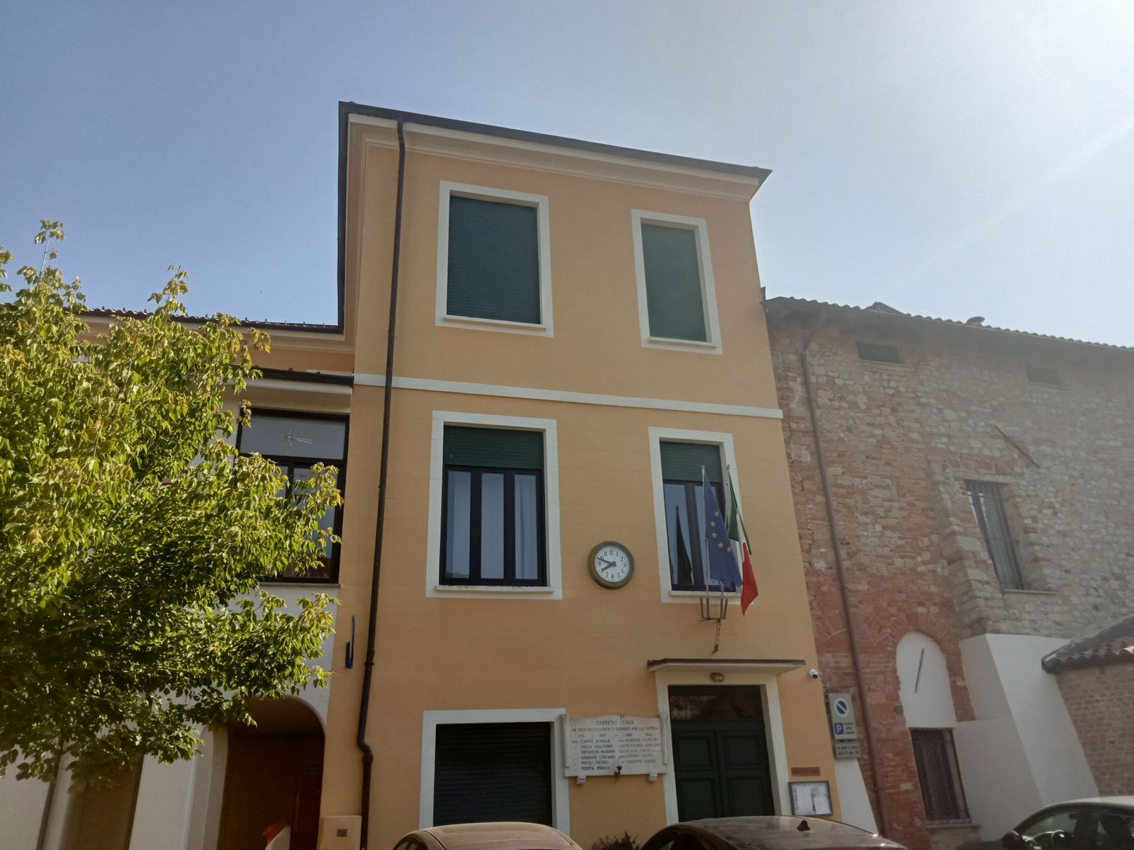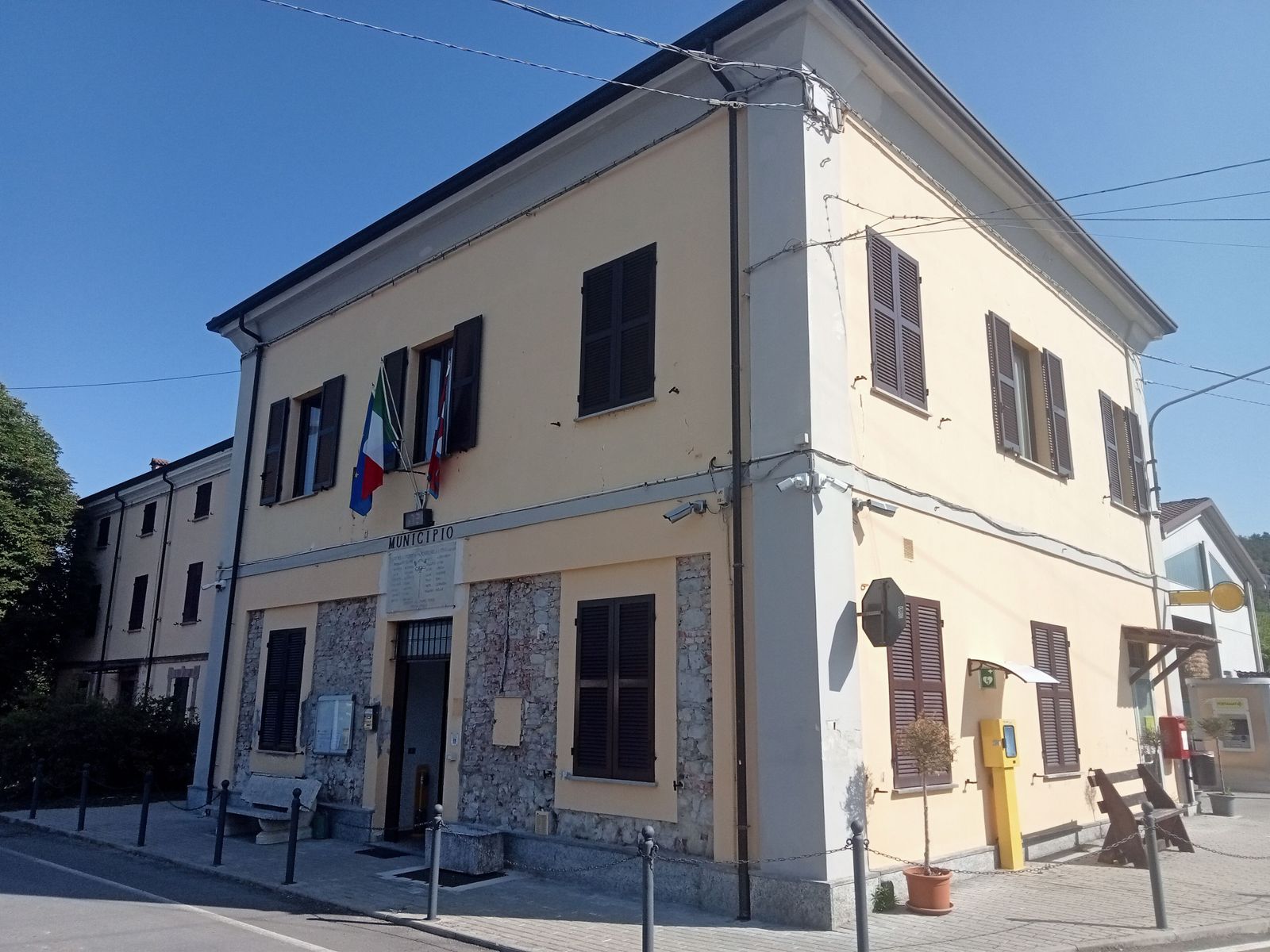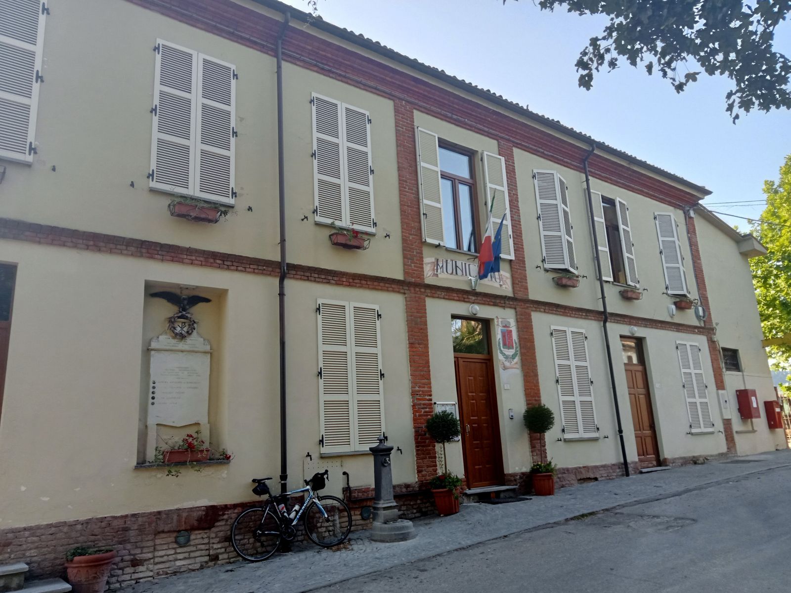… Via via, è bello pedalare al fresco del mattino e in quasi due ore sono davanti al Municipio di Pozzol Groppo, la prima corta salita è andata, la temperatura pin piano sale ma ancora si respira.