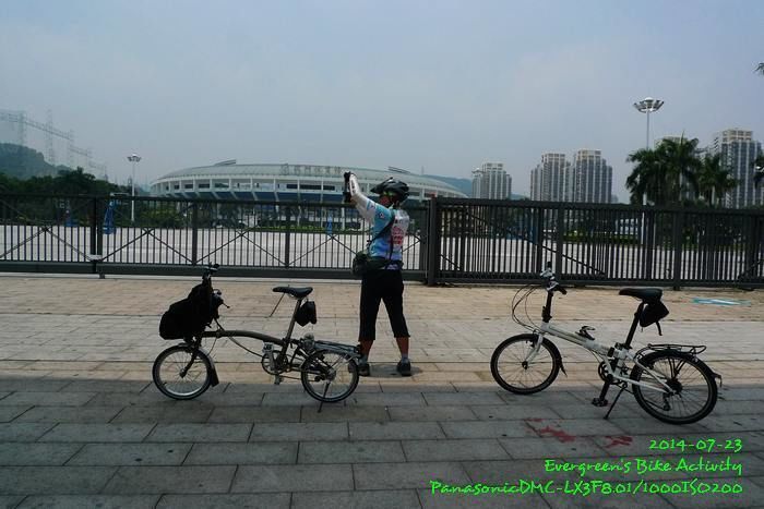 我們沒有預定的路線,取了快遞件後,發現深圳體育館就在不遠處,我提議騎過去找朋友,幾番兜轉,終於到達體育館。在體育館巧遇剛回辦公室的楚南,大家交流了一些摺車的意見。因為不想打擾朋友,沒有預先約好,而朋友因事未回,故訪友不遇。