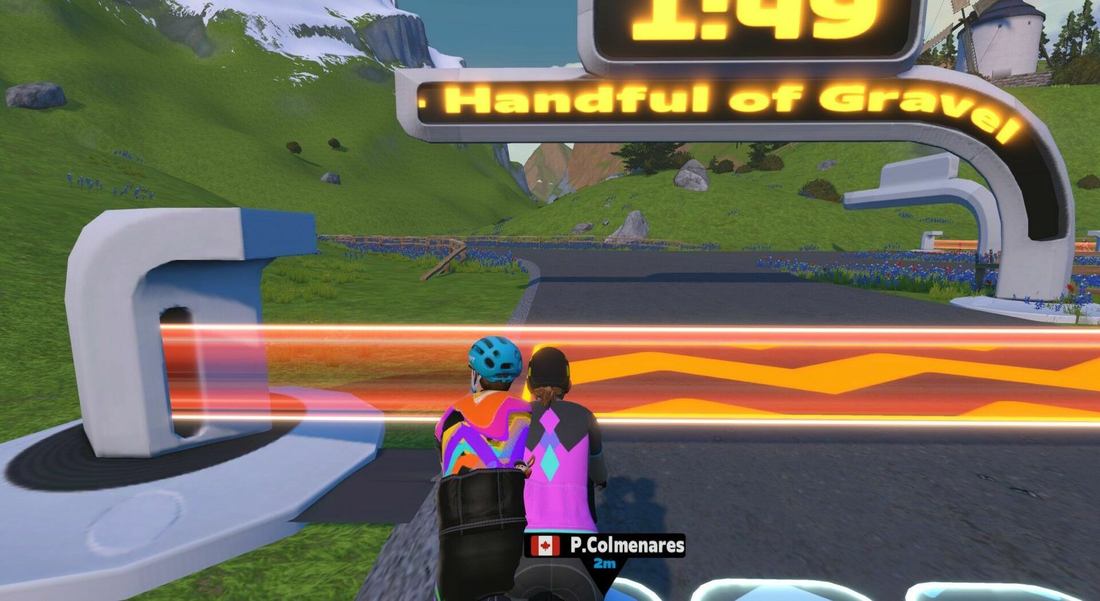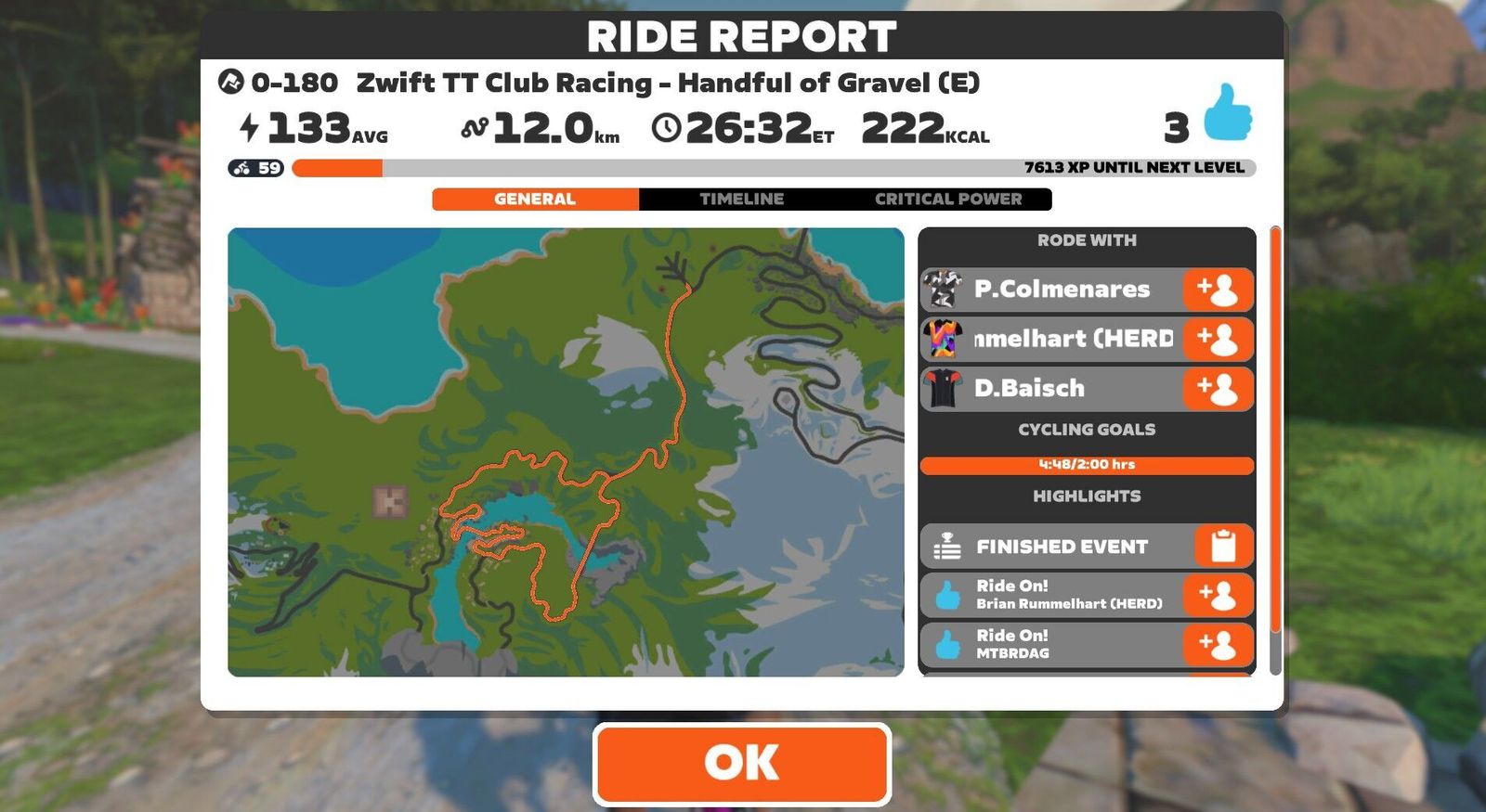 The main event, a TT on the event-only "Handful of Gravel" route through the jungle. I switched to the Grail for this. Unfortunately I failed to start the Garmin after that distraction. Doubly unfortunate, because Zwift dropped my HRM. I'm not getting proper fitness credit as a result. All the postings of this ride are based on the Zwift/Strava data set. Zwift Power gives me 2.0w/kg or 140w average for the race. Did you know that Joan Jett covered that old Xmas tune "The Little Drummer Boy"? Neither did I. I could have lived a long, happy life without knowing that.