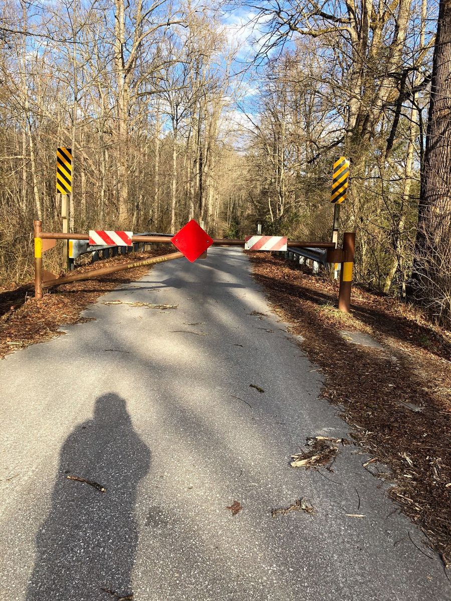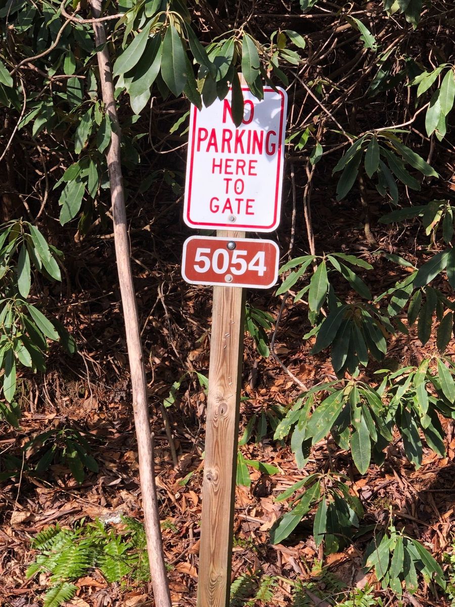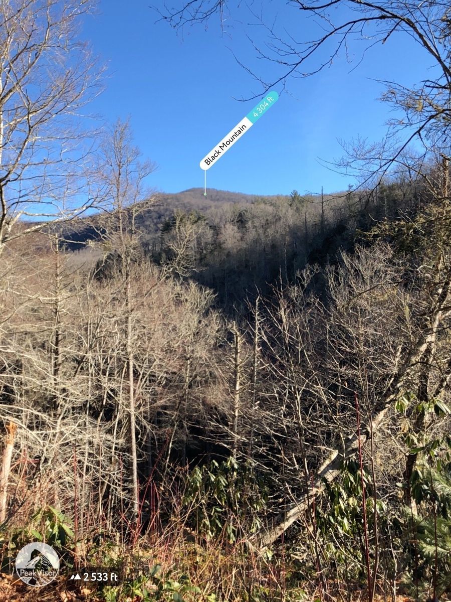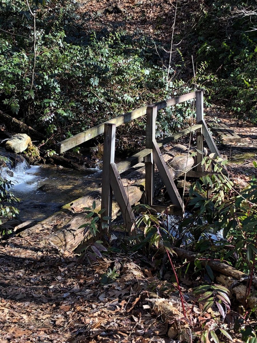 Pisgah Forest from Lower Avery Road. Avery creek trail juts off to the right off Avery Creek Road. The sign says Avery to Clawhammer and this is the trail to take. Also the point where Clawhammer breaks off from Avery is a log bridge across Avery Creek but it is further down the trail than was indicated on the route and trail was blocked by fallen tree. Instead of going up to Black Mountain Vista we continued straight on Turkey Creek Road to the creek. The osm map trail ends but the road, leafy and overgrown, does continue past the creek wher we had lunch.