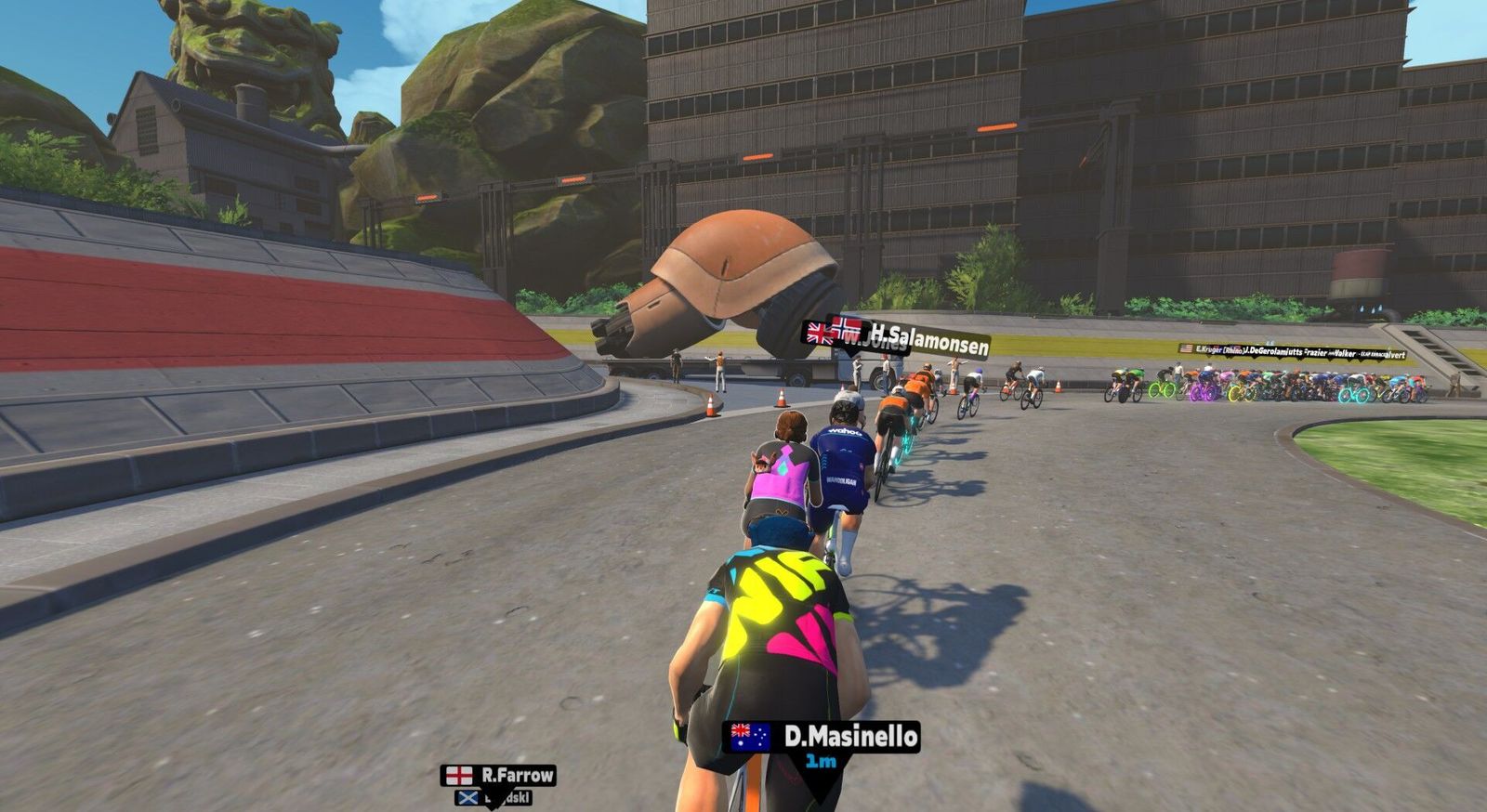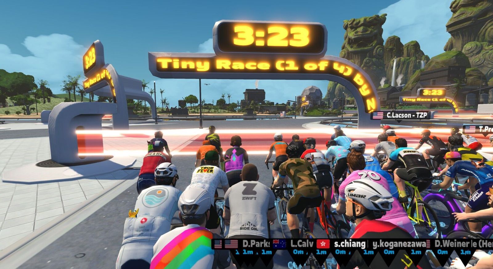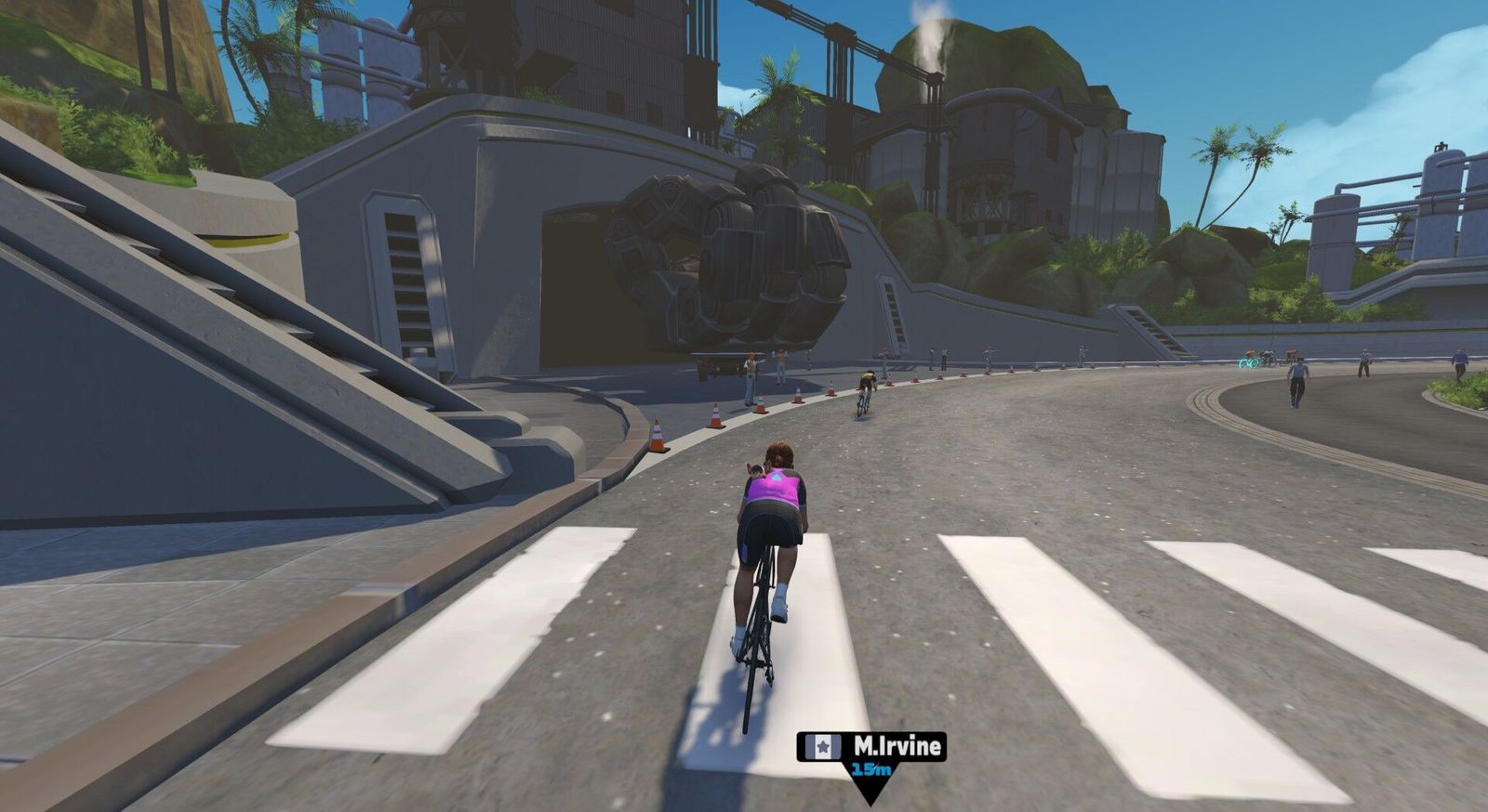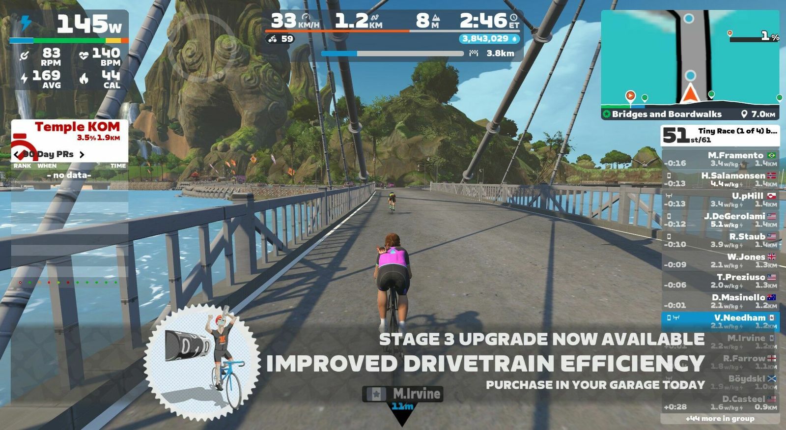 More Zwift Insider "Tiny Races"! They make me push harder than I usually would, and suffering is good for the soul. As usual, I'm only doing two of the four in the quick succession series, giving this old man a chance to catch his breath between bouts. In Race 1 we go 5.1 km climbing just 39 m on the Makuri Islands "Bridges and Boardwalks" route. On Zwift Power I posted an average of 2.4w/kg or 171w. It was a big field and they've grouped us into only three divisions, so absolutely no hope of placing. Being a devout Pastafarian, I queued up a Pasta playlist. Have you been touched by his noodly appendage?