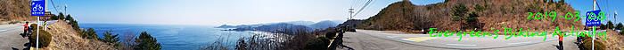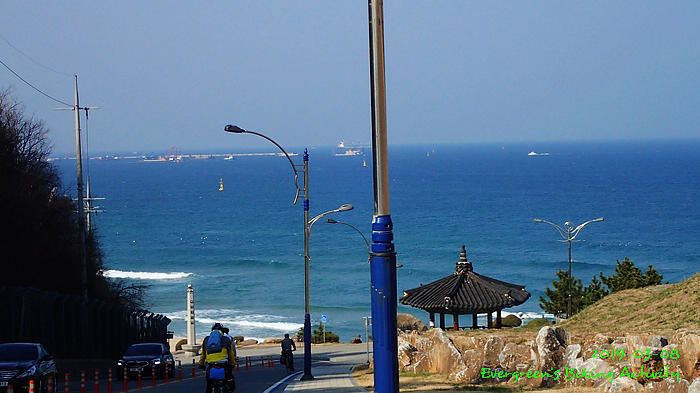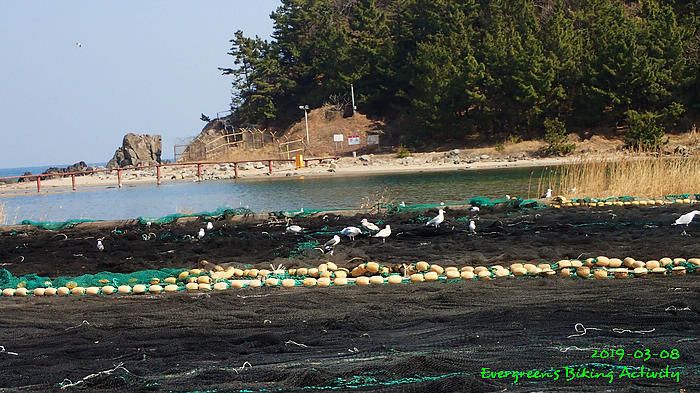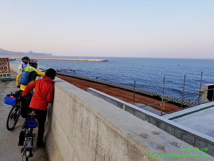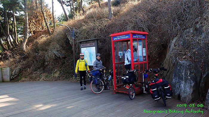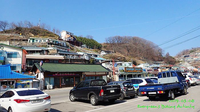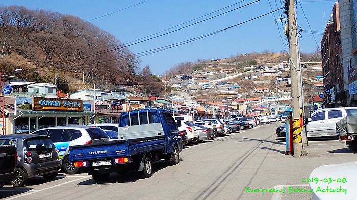 因為坡多,騎行時間長,在到正東津前,見時間不早,我們幾乎在最後一個公路高點上投宿,這裏就只有兩間汽車旅館,我們也已經問了價錢。但係這個位置,前不著村,後不著店,如果在此過夜,晚餐也不知如何是好。後來細心再查看,兩、三公里長坡後,是一處海邊小市鎮,落去看看有沒有食宿,總比住這裏好。