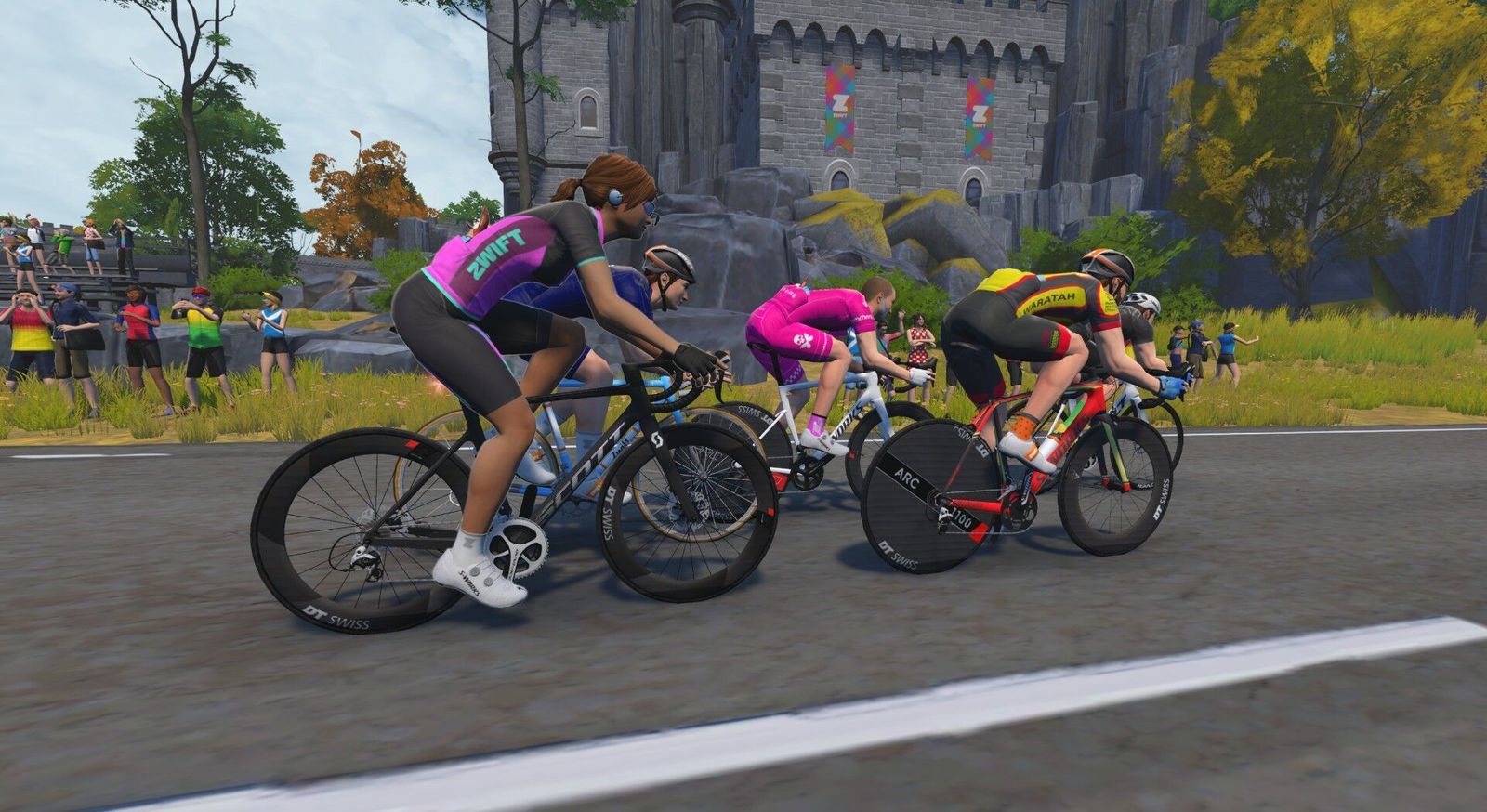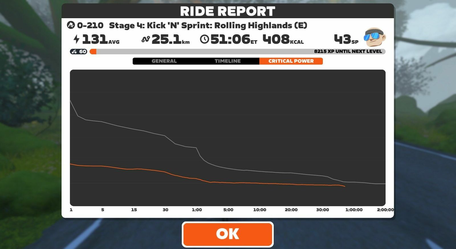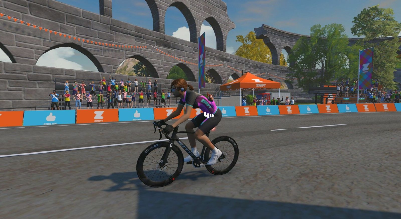 Leveled up to the 60th step with the help of a pretty great dance pop playlist. Tiffany sang "I Think We're Alone Now" just as I pedaled on my own past Nessie, and the Eurythmics provided authentic Scottish sounds to this Rolling Highlands course. Stayed with the leaders for about the first third of the race before the hot shots dropped the hammer and I did not try to follow. Stayed all by my lonesome (save for Nessie) in the middle of the pack from then on. There were only two of us in Zwift Power, so I podiumed there with an average 2.0w/kg or 141w (142w normalized). One rider was in the pink Betty Designs kit that I have yet to earn. I did earn the very Lisa Bike yellow and black level 60 kit, and changed my Scott Addict colorway to yellow to match. If you can't be good you should at least look good!