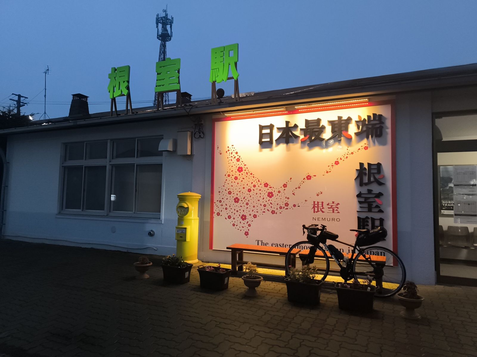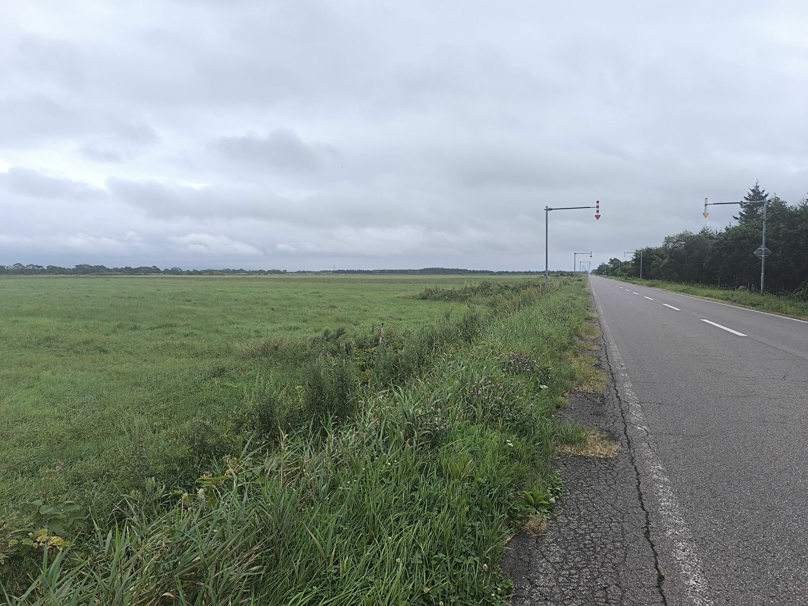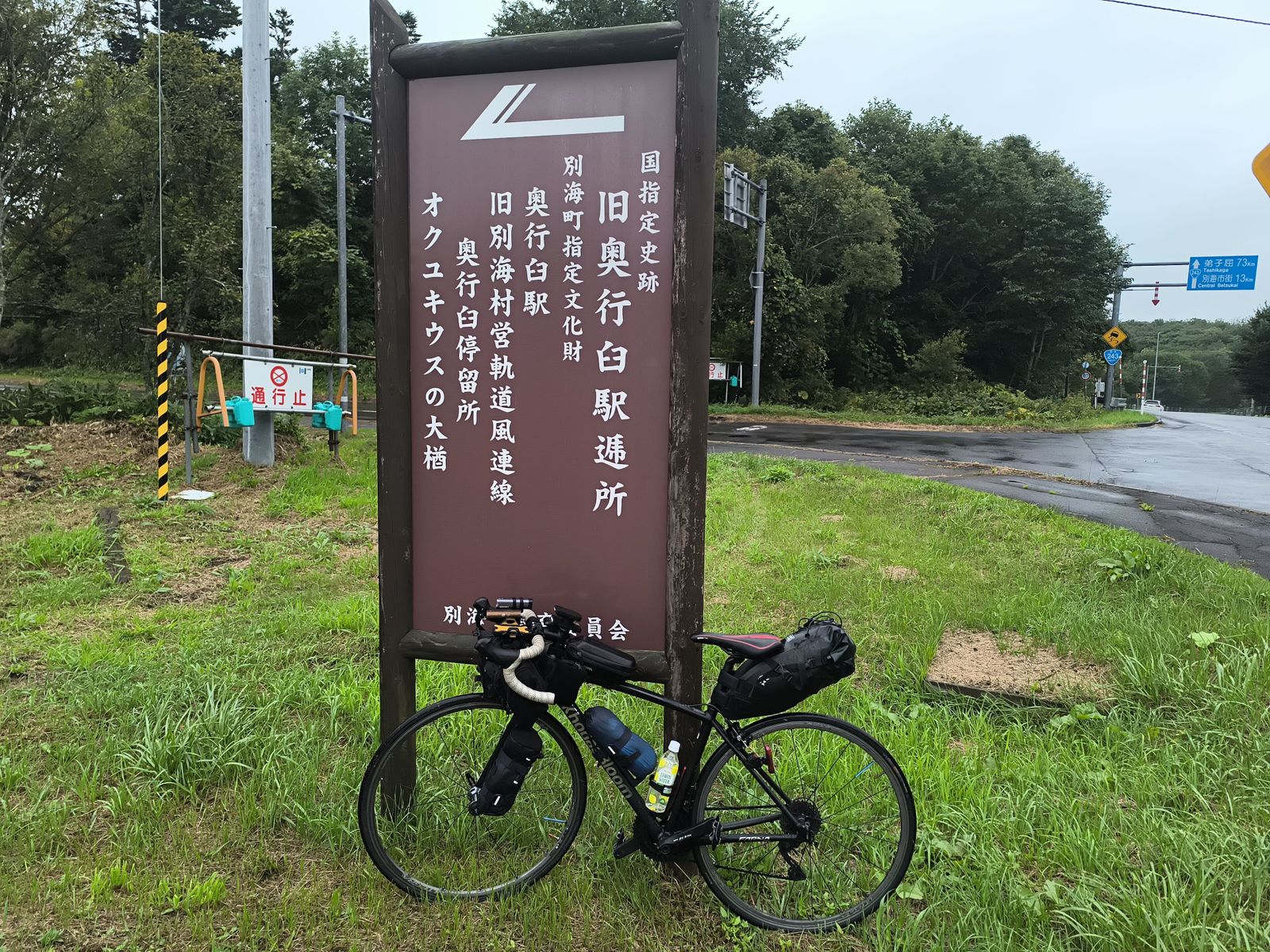 網走から根北峠まで曇り向かい風多し、峠を越えて以降少雨、標津から雨脚強まり別海町から根室まで本降りの雨。厚床から根室まで追い風。