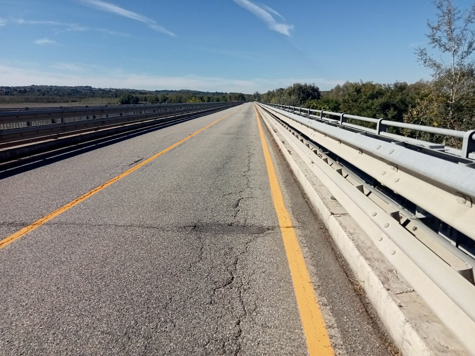 A seguire Montariolo, Grava, e dopo tanto tempo rimetto le ruote sul viadotto che scavalca il Tanaro poco prima di Bassignana, dove i lavori di ristrutturazione proseguono a carreggiata unica alternata.