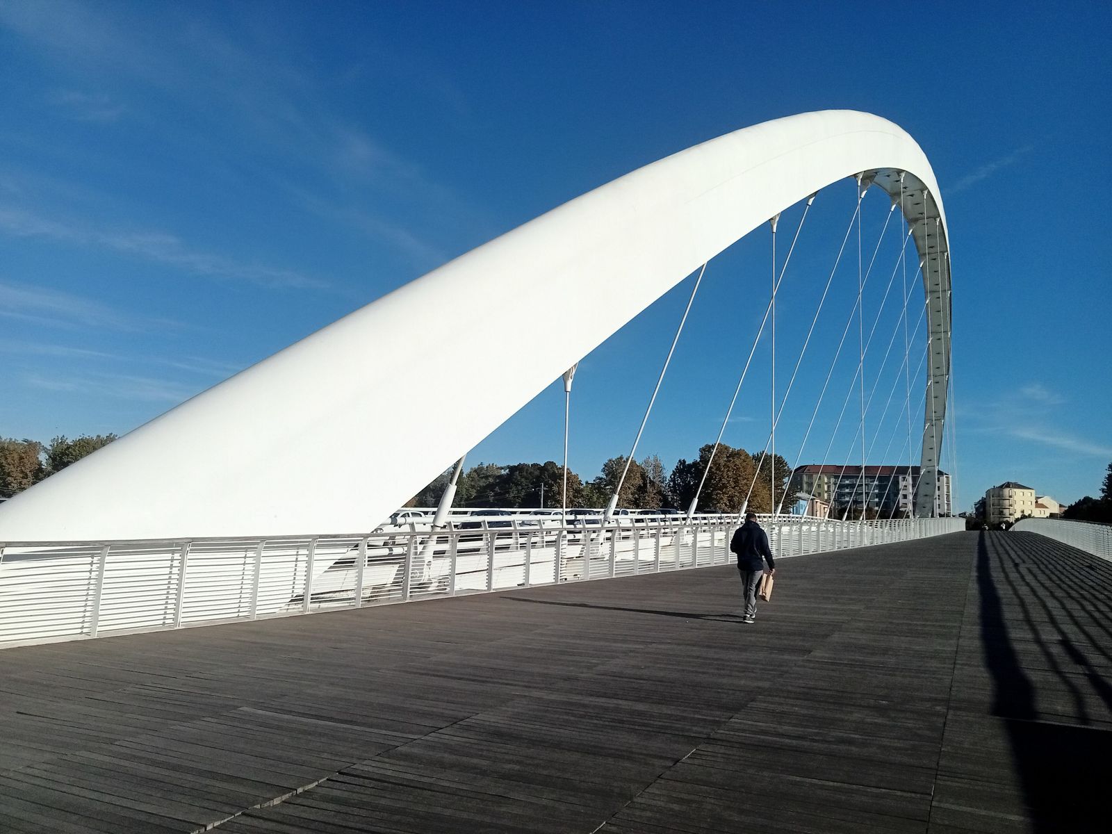 Ad Alessandria salgo sul Ponte Meier, pochi metri e le ruote quasi affondano tra le rumorose assi del tratto ciclo pedonale, per poco non cado a terra. Niente che segnali il pericolo. Fotografo sia le assi che il ponte a ricordo del giro e proseguendo, al lato opposto del ponte ancora assi divelte, ma qui sono segnatale da transenne. Non ha ancora compiuto 10 anni e già cade a pezzi.