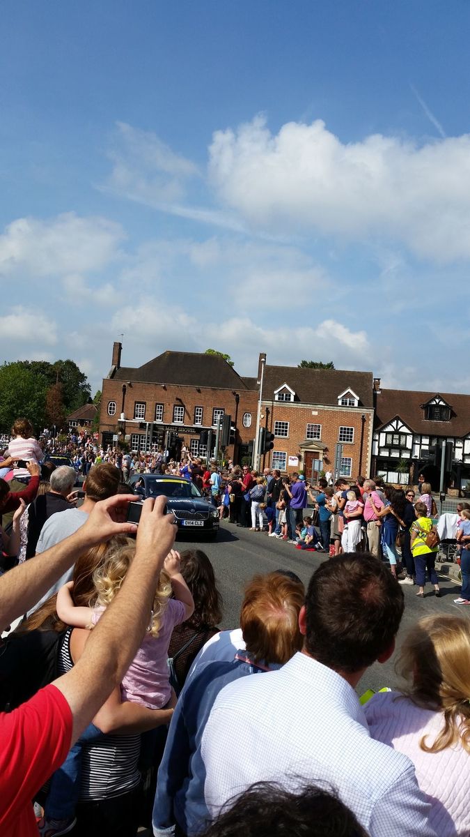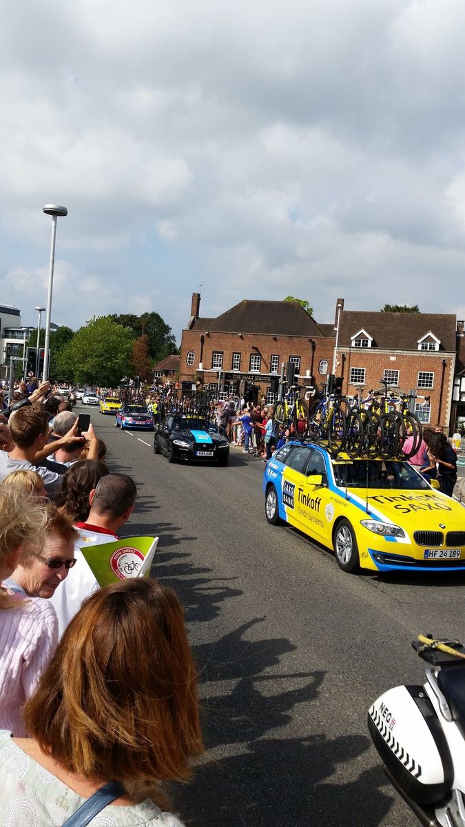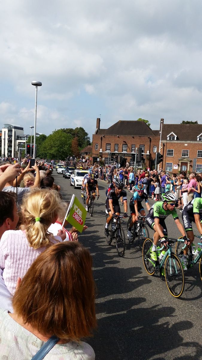 Steyning, West Sussex to Horsham to view Tour of Britain sprint, and on to Ditchling to see Tour riders start Ditchling Beacon climb.
